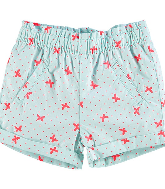 Your sweet baby girl will look adorable in these soft pull on shorts with an all-over butterfly and heart print. They feature two mock pockets on the front, turned cuffs and ruffled gathering at the elastic waistband. Choose from our wide online selection of tops to complete the look.