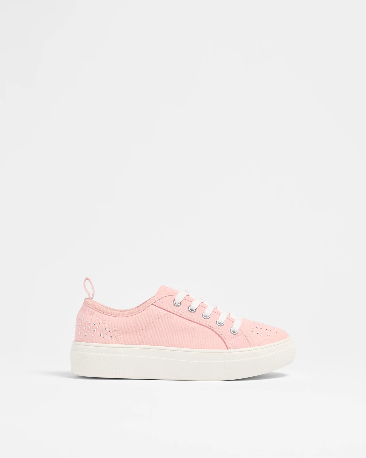 Girls Senior Denim Sparkle Lace Up Sneaker