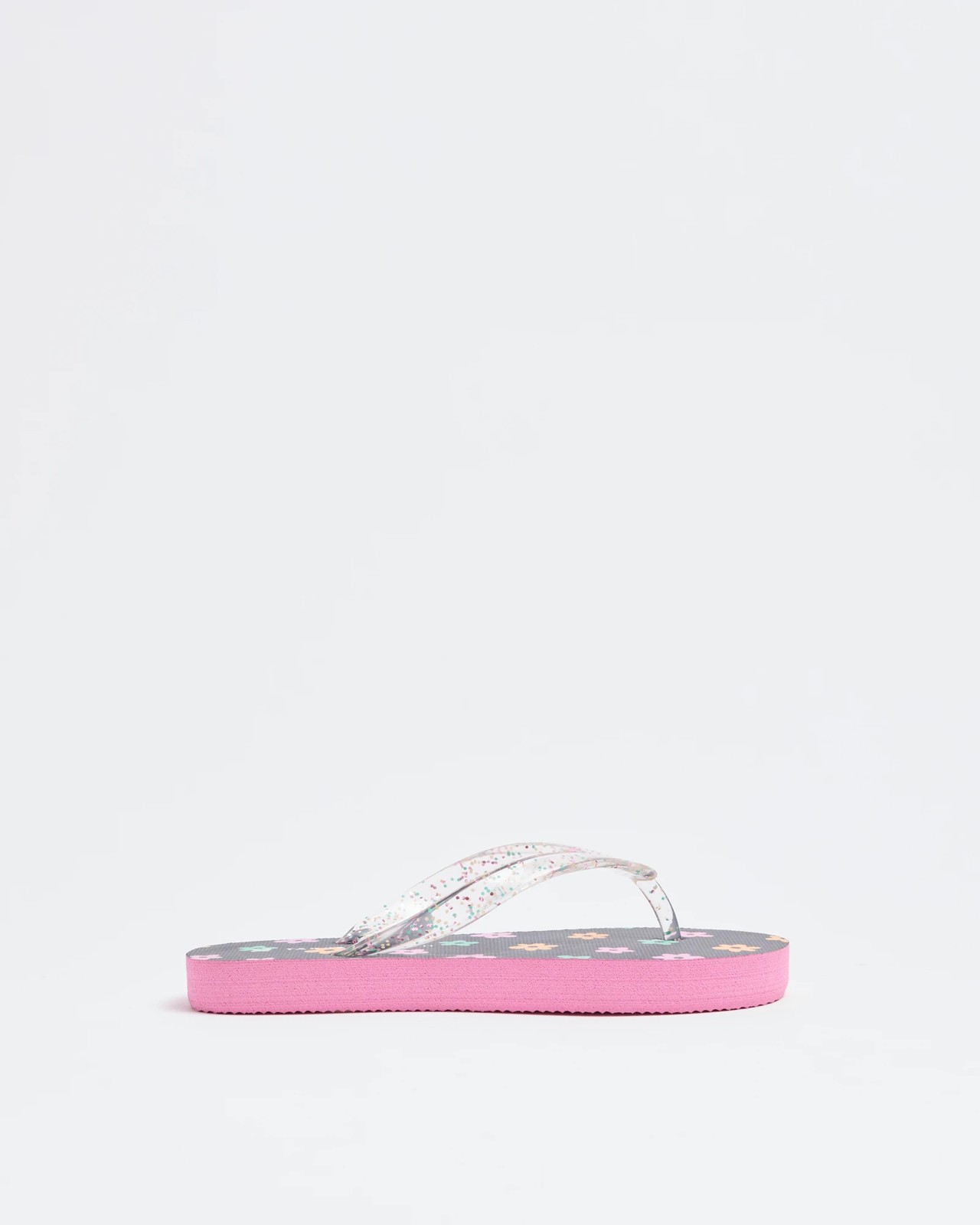 Step into style with our Girls Youth Print Thongs, perfect for sunny beach days. Featuring a synthetic upper and a comfortable 3-point toe post strap, these thongs provide both flair and comfort. The stylish print footbed adds a fun touch, while the flexible 1.5cm sole ensures easy movement. Ideal for any young fashionista, these thongs will quickly become her go-to footwear. Grab a pair today and let her embrace the joy of summer in comfort and style.