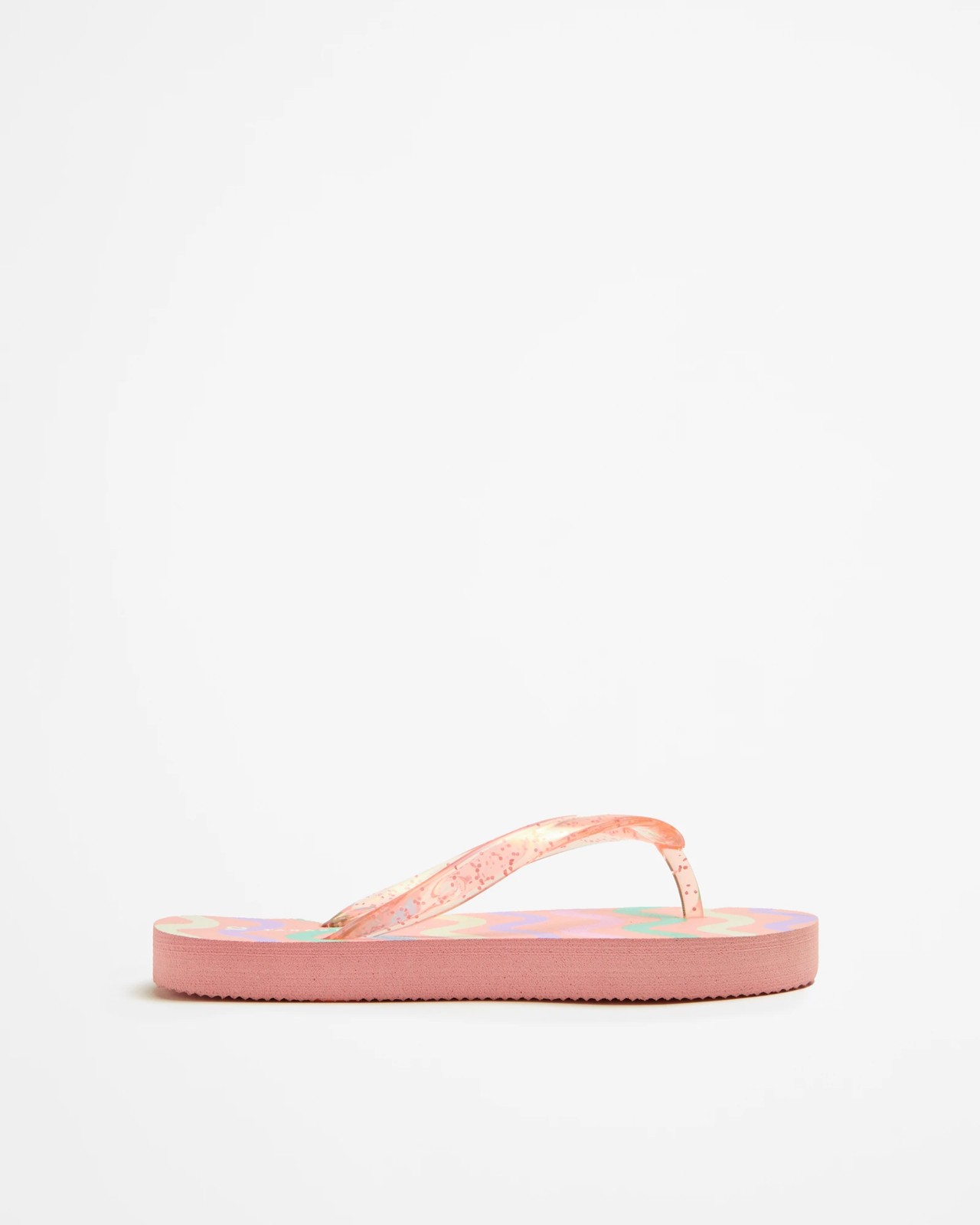 Step into style with our Girls Youth Print Thongs, perfect for sunny beach days. Featuring a synthetic upper and a comfortable 3-point toe post strap, these thongs provide both flair and comfort. The stylish print footbed adds a fun touch, while the flexible 1.5cm sole ensures easy movement. Ideal for any young fashionista, these thongs will quickly become her go-to footwear. Grab a pair today and let her embrace the joy of summer in comfort and style.