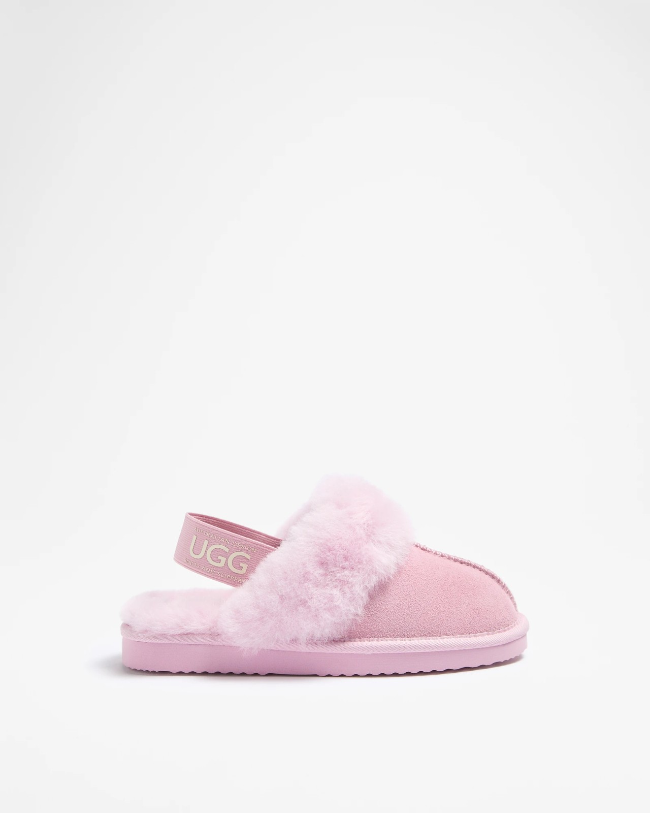 Girls Youth Sheepskin and Leather Elastic Scuff Slipper - Pink