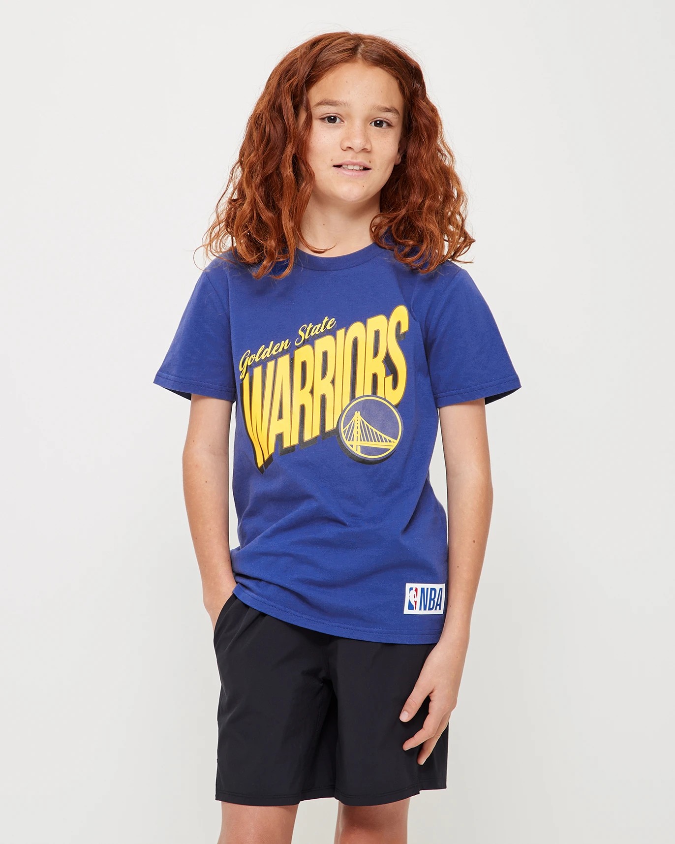 Cheer on the Golden State Warriors with this boys' T-shirt. Crafted from a cotton rich fabric for comfort, it features a ribbed crew neck, large Golden State Warriors print to front and short sleeves. The regular fit is completed with a straight hemline for added style. Perfect for everyday wear!