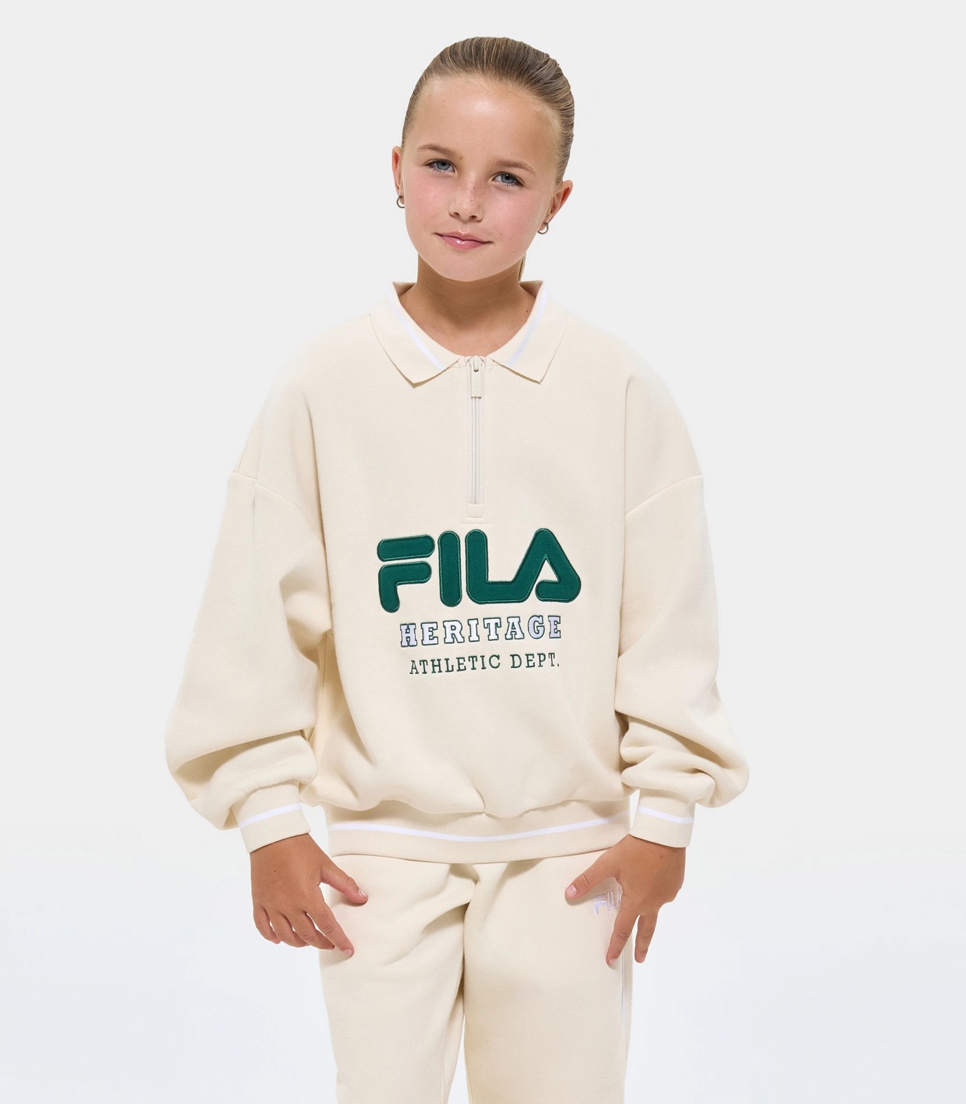 Always cool. Always comfortable. Smooth on the outside and brushed soft on the inside, our Grace quarter zip is an easy layer when you want a little extra warmth. The oversized fit offers room to move without feeling too big. This is a sporty yet stylish style that can be a versatile addition to your wardrobe that combines comfort and functionality effortlessly. Crafted with quality fabric, this jumper offers a balance of softness and durability for everyday wear. Featuring a collar, quarter zip to front so you can customize your fit, Fila applique embroidery to the centre front chest and tipping to the rib on the collar, cuffs and hem. Crafted in an ultra-soft Cotton/Polyester Brushed Fleece to keep you warm and snug. Pair with the matching Grace trackpant (sold separately) for a chic coordinated set. From catching up with friends, exercising, to couch hangs, this sweat will be your new BFF.