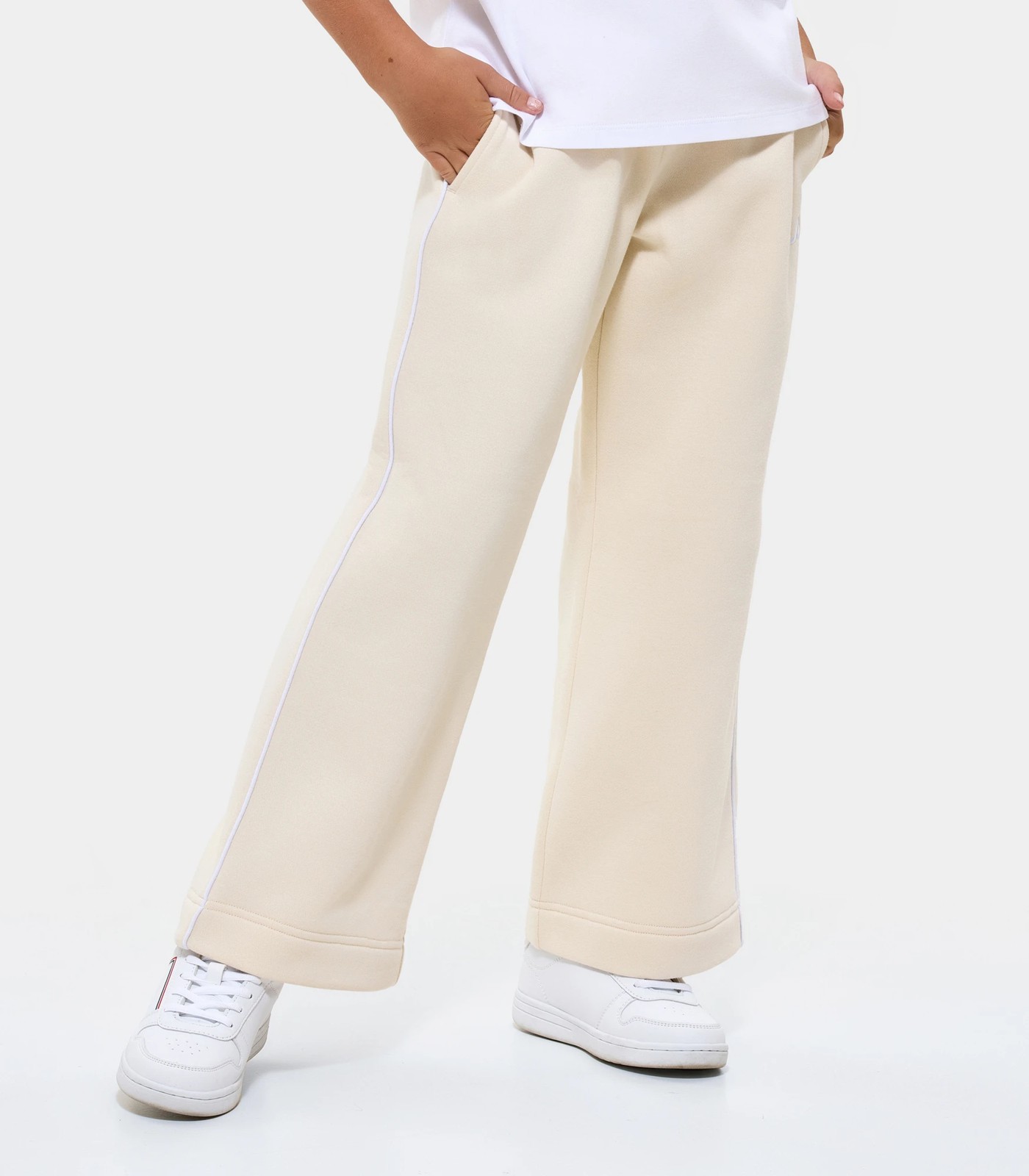 Step up your athleisure game with these stylish Fila Grace trackpants. Enjoy the comfort and versatility of Cotton/Polyester brushed fleece. The side pockets provide convenient storage, while the ribbed waistband and external drawcord ensures a snug fit. Stand out with the chic contrast piping detail on the side legs and the iconic Fila embroidery on the front left hip. These trackpants are perfect for both casual outings and your active lifestyle. Designed with a wide leg, these are super comfy and have a beautiful feel against the skin, these are a must-have for any fashion-forward individual! Style with the Grace quarter zip (sold separately) in the same colourway for a coordinated look or style with your favourite tee or crew.