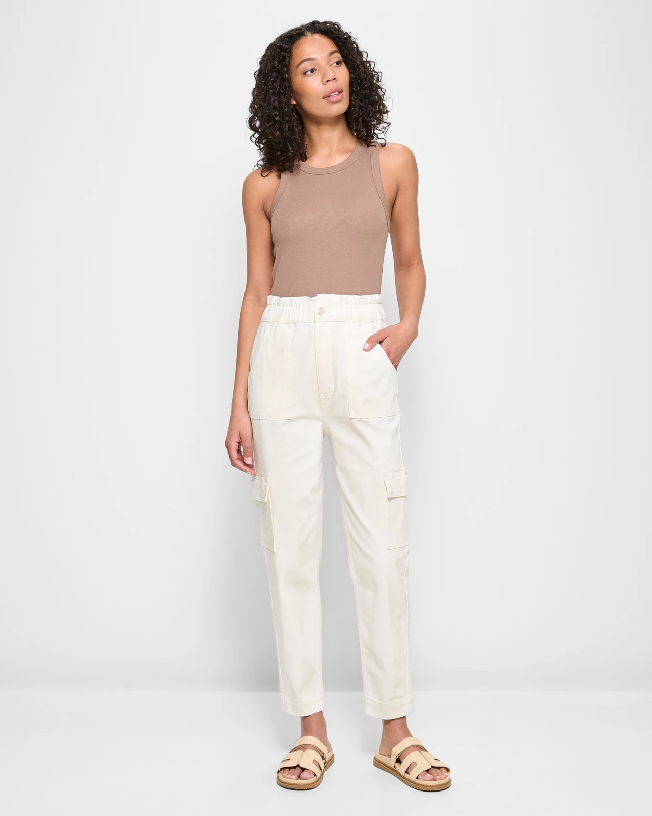 Super High Rise Ankle Length Paperbag Cargo Denim Jeans 1 of 5