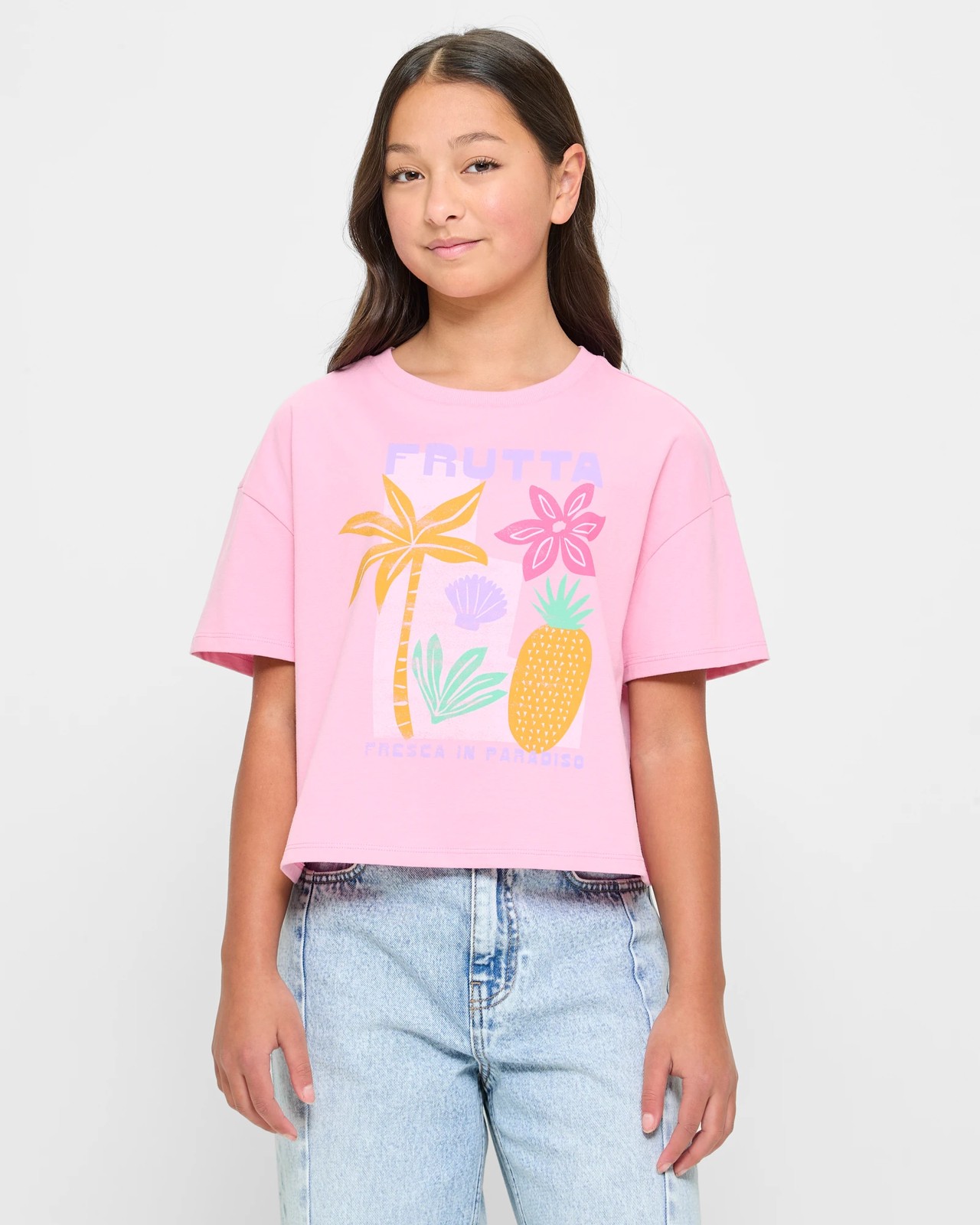Discover the charm and comfort that comes with our girls Graphic Boxy T-shirt. Designed with care, this t-shirt features a playful graphic print that will liven up any outfit. Perfect for casual days, the boxy fit offers both style and ease, while the ribbed crew neck and short sleeves provide a classic touch. Add this versatile piece to her wardrobe today and enjoy the effortless style it brings to her daily adventures.