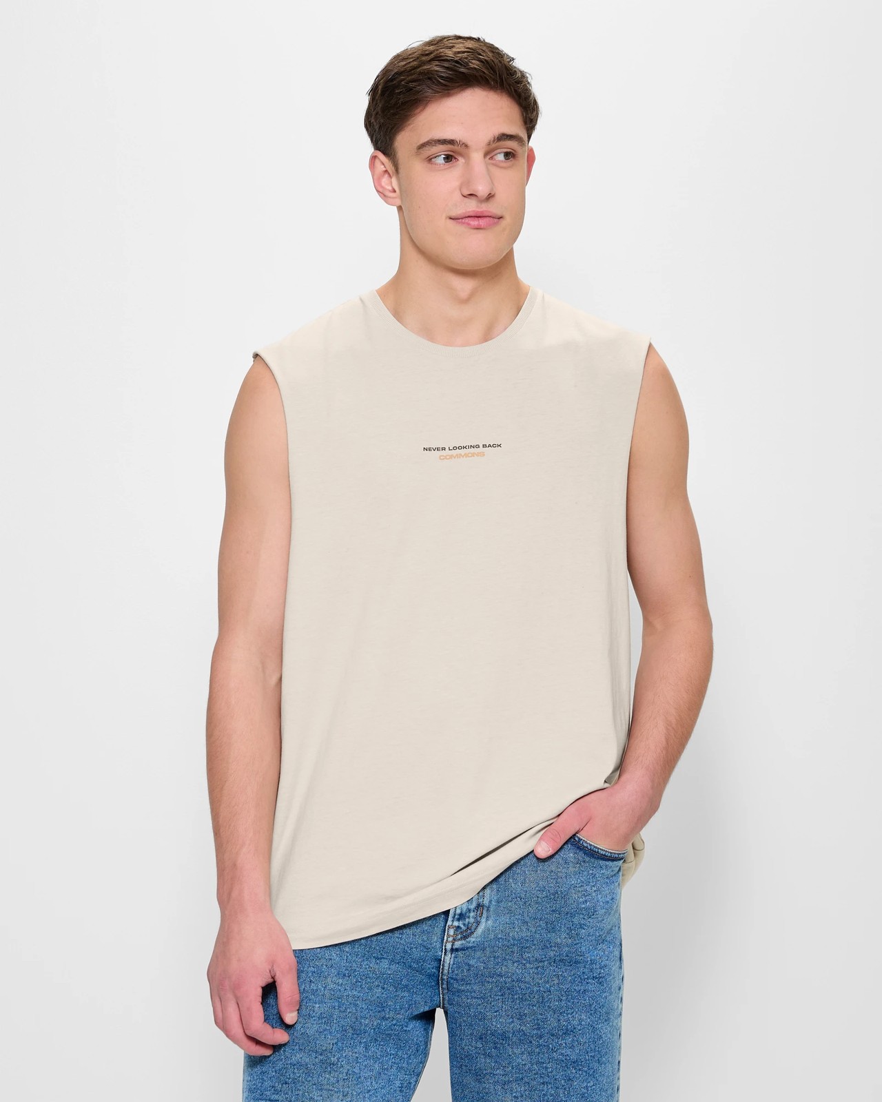 Discover unparalleled comfort with our Graphic Tank Top by Commons. This airy and soft cotton top features a relaxed fit that ensures you stay cool and stylish. Perfect for any casual outing, it flaunts a ribbed crew neckline and wide armholes with a unique rolled edge finish. The bold prints on the chest and back make a striking statement. Embrace effortless style and add this versatile piece to your wardrobe today.