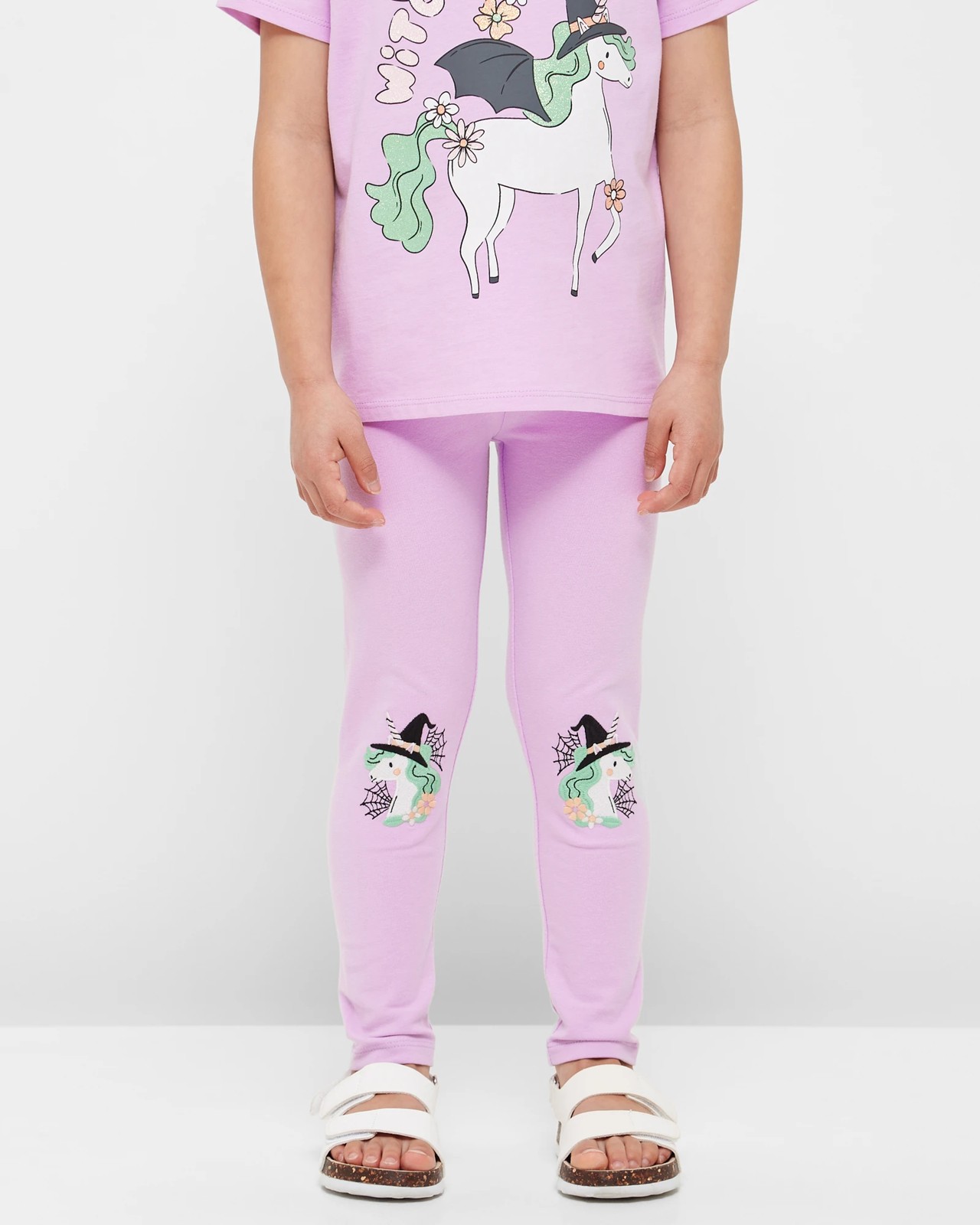 Make heads turn this Halloween with the spooky Witch-icorn Embroidery Knee Patch Leggings! Made from a cotton-rich blend for a comfortable fit, these leggings feature an elastic waistband and regular fit silhouette. Perfect for any occasion, the bright pink hue and witch-icorn embroidery patch to the knees will ensure they stand out from the crowd. Get ready to have some spooky fun with the Halloween Knee Patch Leggings!
