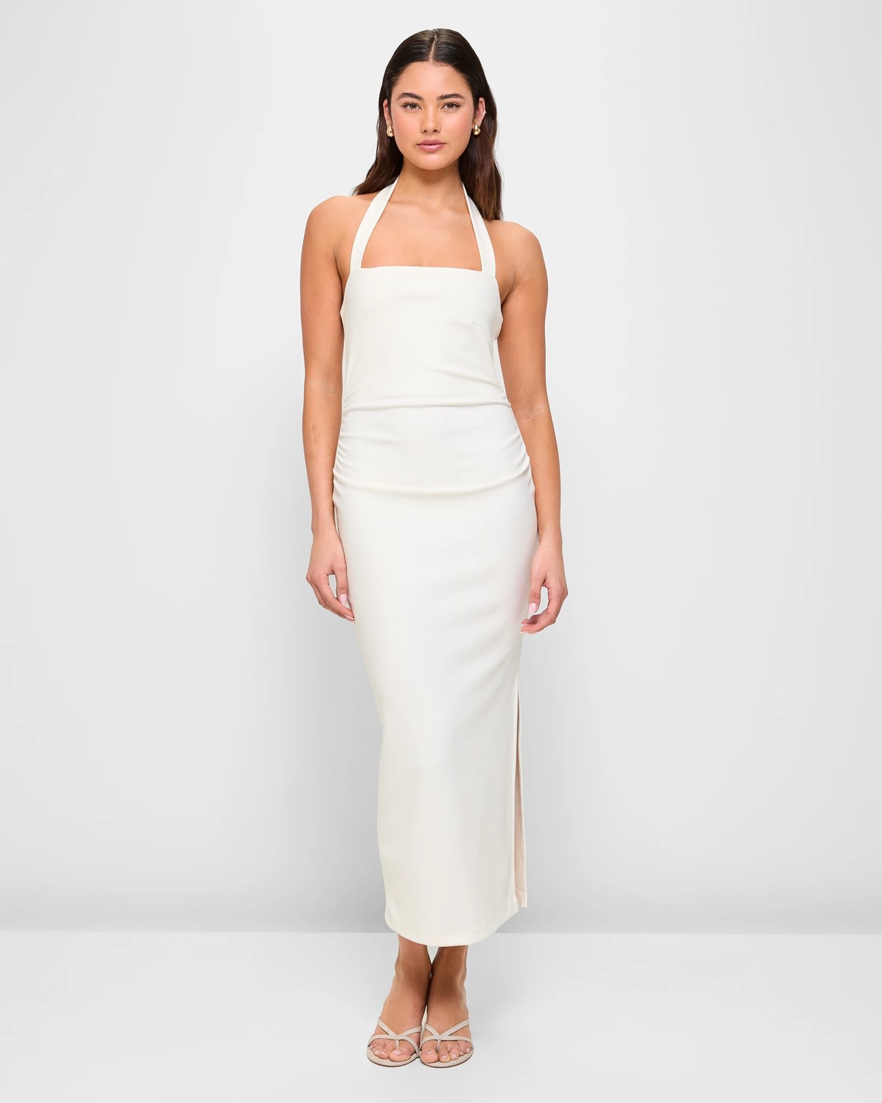 Step out in confidence with the Halter Neck Gathered Midi Dress from Lily Loves. Tailored from a luxurious polyester blend with a touch of elastane, this dress offers both comfort and a stylish fit. Its all-over textured design and slim fit create a chic, sophisticated look perfect for any occasion. The halter neckline with a sweetheart detail adds a touch of charm, while the darting at the chest and gathered sides flatter your figure. With its straight hemline, midi length, and daring side split, this dress is as bold as it is beautiful. Make it yours and turn heads wherever you go.