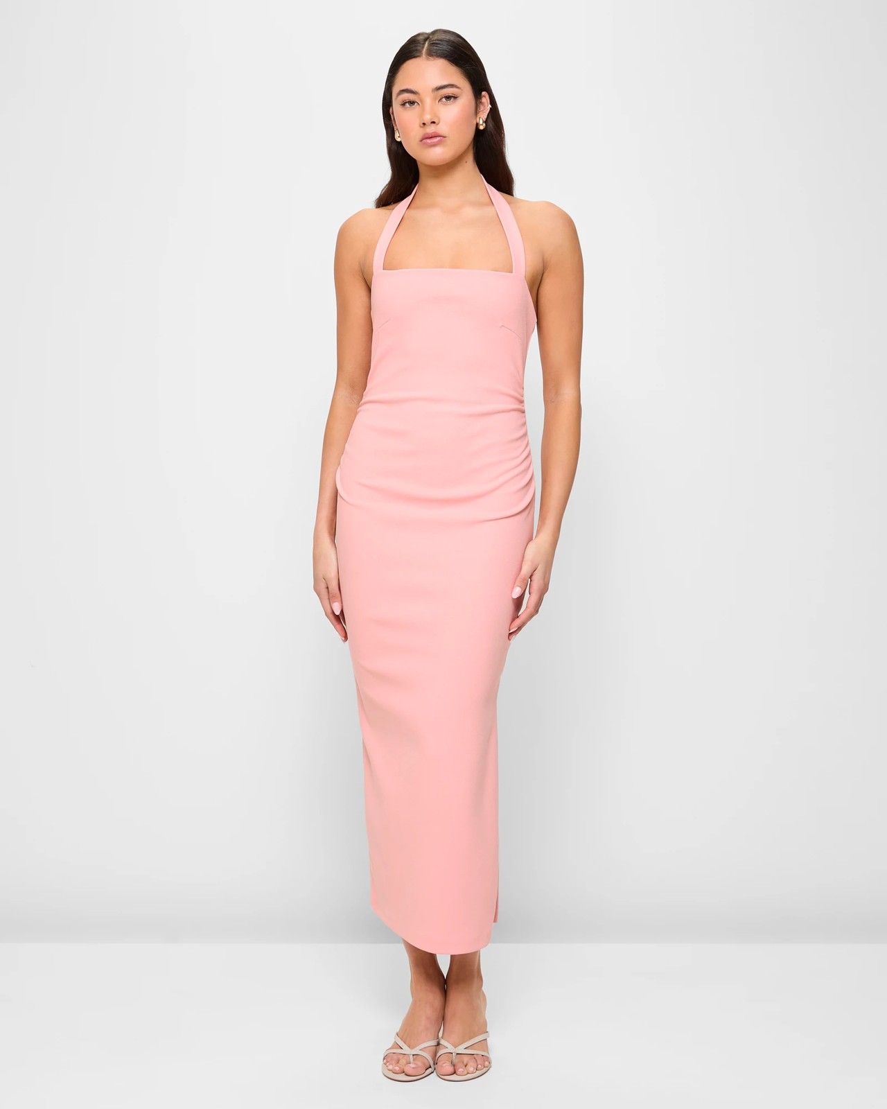 Step into sophistication with the Lily Loves Halter Neck Gathered Midi Dress. Made from a high-quality polyester blend with added elastane, it ensures both comfort and style throughout the day. The soft pink hue pairs beautifully with the slim, textured design, while the halter neckline and sweetheart chest bring a touch of romance. The dress features delicate gathering at the waist and an alluring open back, perfect for making an entrance. Feel fabulous at your next event and turn heads wherever you go. Don't miss out on this must-have addition to your wardrobe.