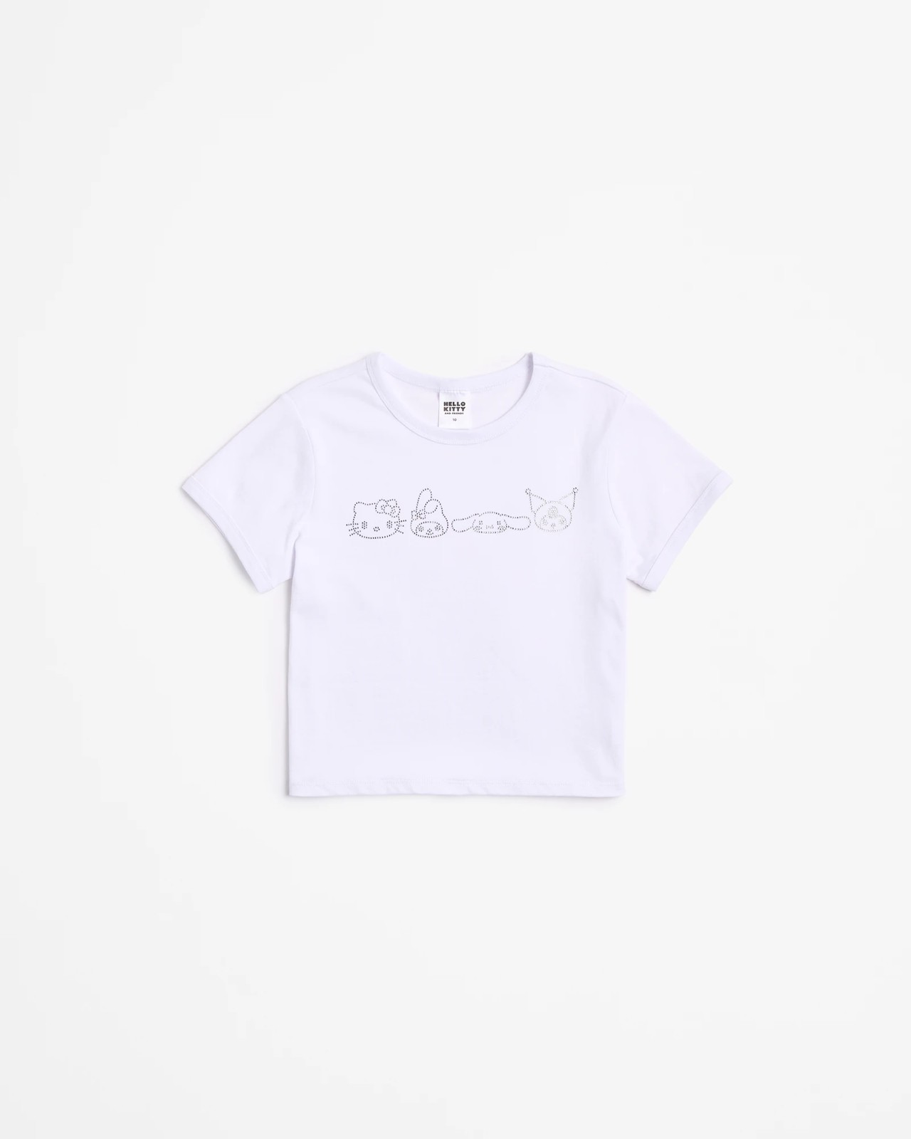 Step into a world of charm with this delightful Hello Kitty Diamante T-shirt. Made from soft cotton, it offers a comfortable regular fit and features a classic crew neck and short sleeves with ribbed cuffs for added style. Adorned with a sparkling diamante Hello Kitty design on the front, this white top adds a touch of fun to any outfit. Perfect for casual days out or fun gatherings, it promises to be a favourite in any girl's wardrobe. Treat your little one to this adorable tee and watch their eyes light up with joy.