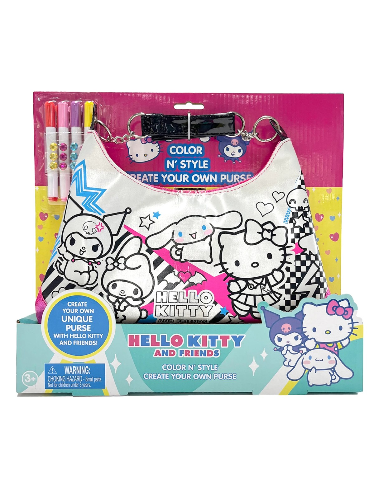 Unleash your artistic side with the Hello Kitty & Friends Colour Your Own Purse! This delightful kit lets you design and color your very own purse, featuring your favorite characters like Hello Kitty, My Melody, Cinnamoroll, and Kuromi.