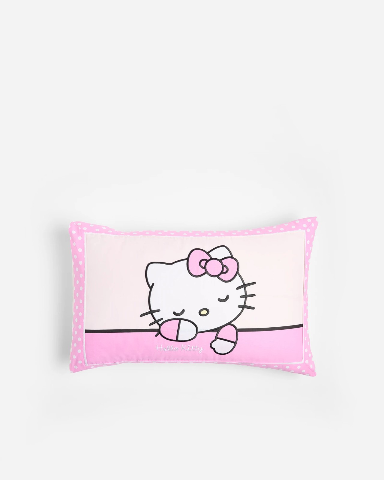 Transform your bedroom into a delightful haven with this charming Hello Kitty Pillow Sham. Featuring a captivating large pink Hello Kitty design on the front, beautifully accented with intricate embroidery, it adds a magical touch to any space. It comes with one pillowcase, measuring 48cm (W) x 73cm (L), ensuring a snug fit for standard pillows. Enjoy the convenience of easy maintenance as this pillow sham is machine washable – simply follow the provided care instructions. Perfect for fans of all ages, it's a wonderful way to bring a playful and cosy vibe to your bedding. Let Hello Kitty bring a smile to your face every night.