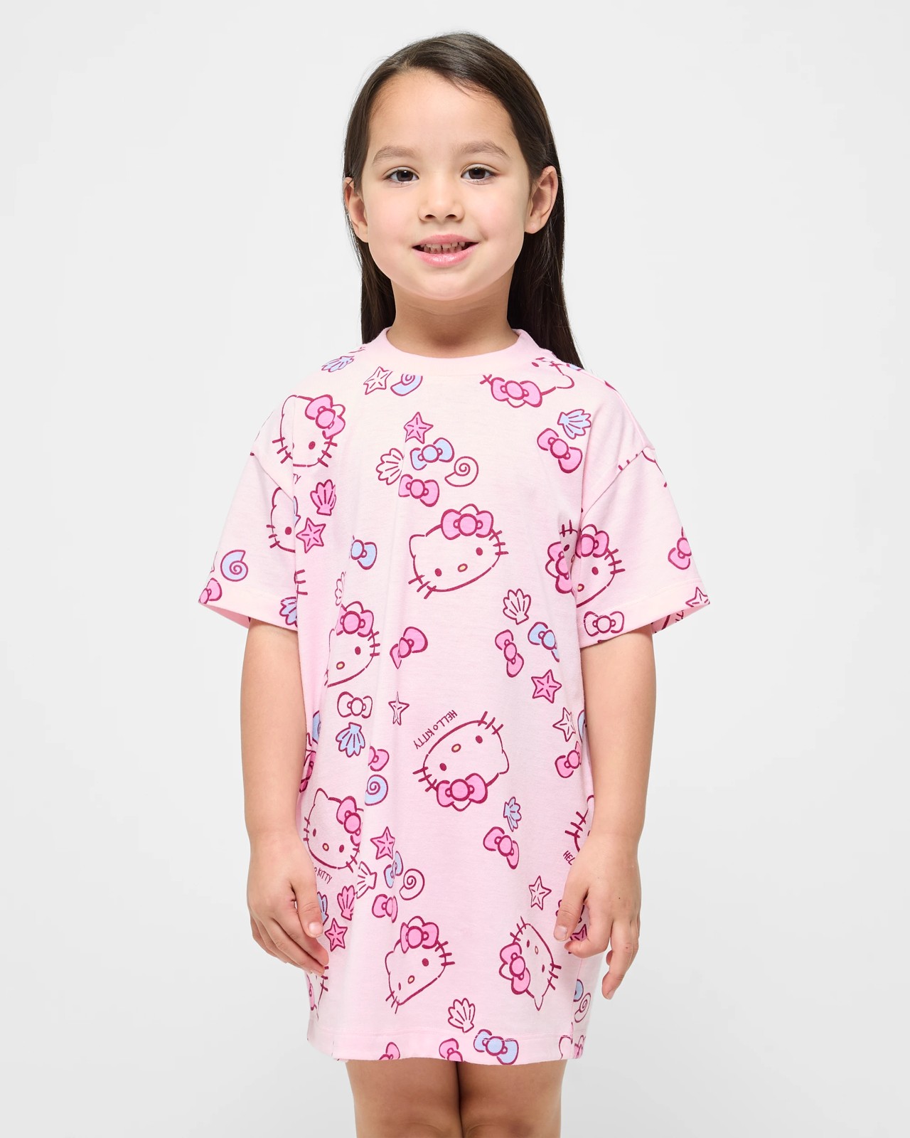 Let your child drift off in cosy comfort with the adorable Hello Kitty sleep nightie. Made from a gentle blend of polyester and cotton, this lightweight nightdress is exceptionally soft against the skin, ensuring a restful night's sleep. The classic fit provides plenty of room to move, while the ribbed neckline and short sleeves make it easy to slip on and off at bedtime. Adorned with a delightful all-over Hello Kitty pattern in cheerful pink, it instantly brightens up every evening. The short cut and straight hem offer a playful yet relaxed look, ideal for warm nights or playful lounging at home. Surprise a little Hello Kitty fan with this lovely gift and make their nighttime routine a moment to look forward to.