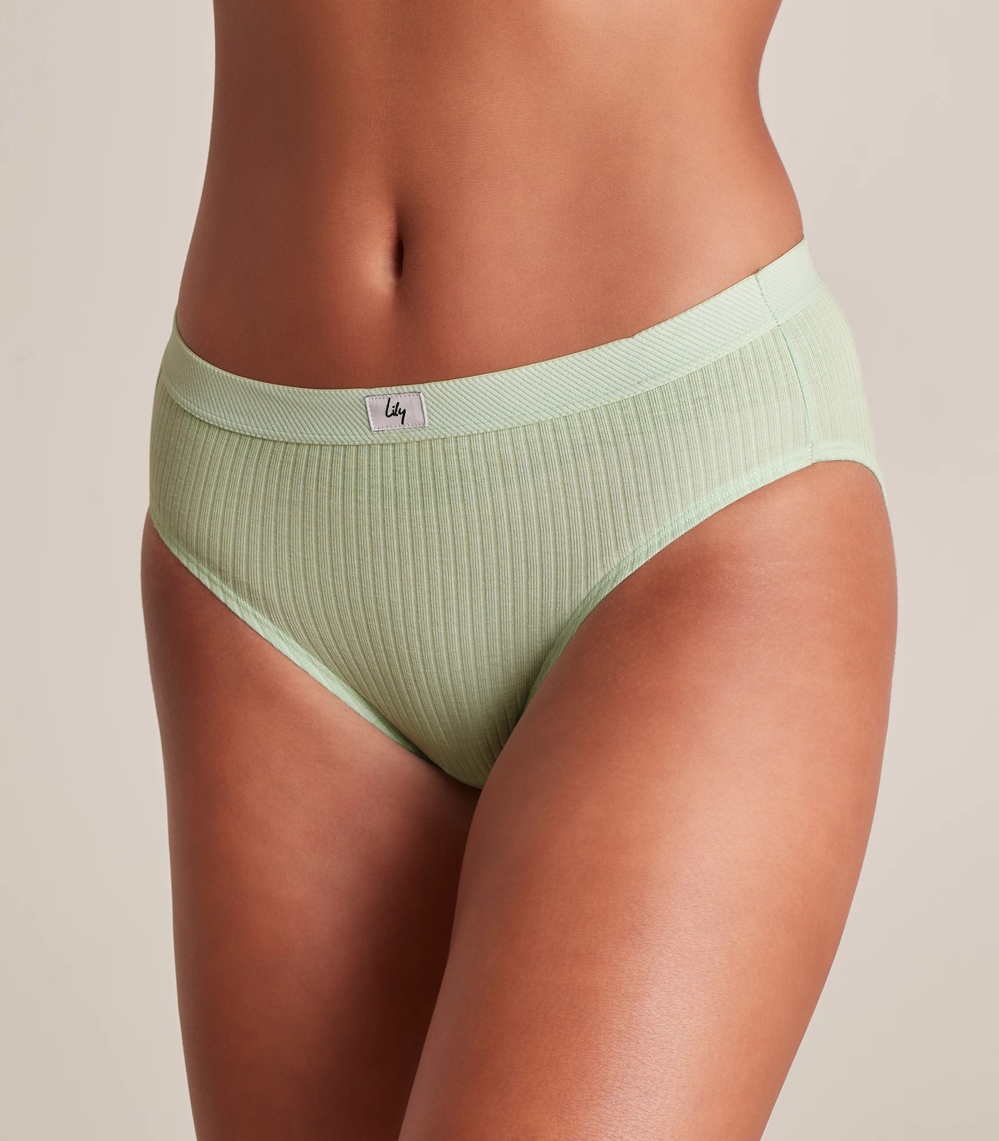 The Lily Loves heritage ribbed high waisted bikini briefs are comfy and great for everyday wear. They feature a thick elastic waistband with a Lily applique in the centre, an all over ribbed look and a high cut leg.