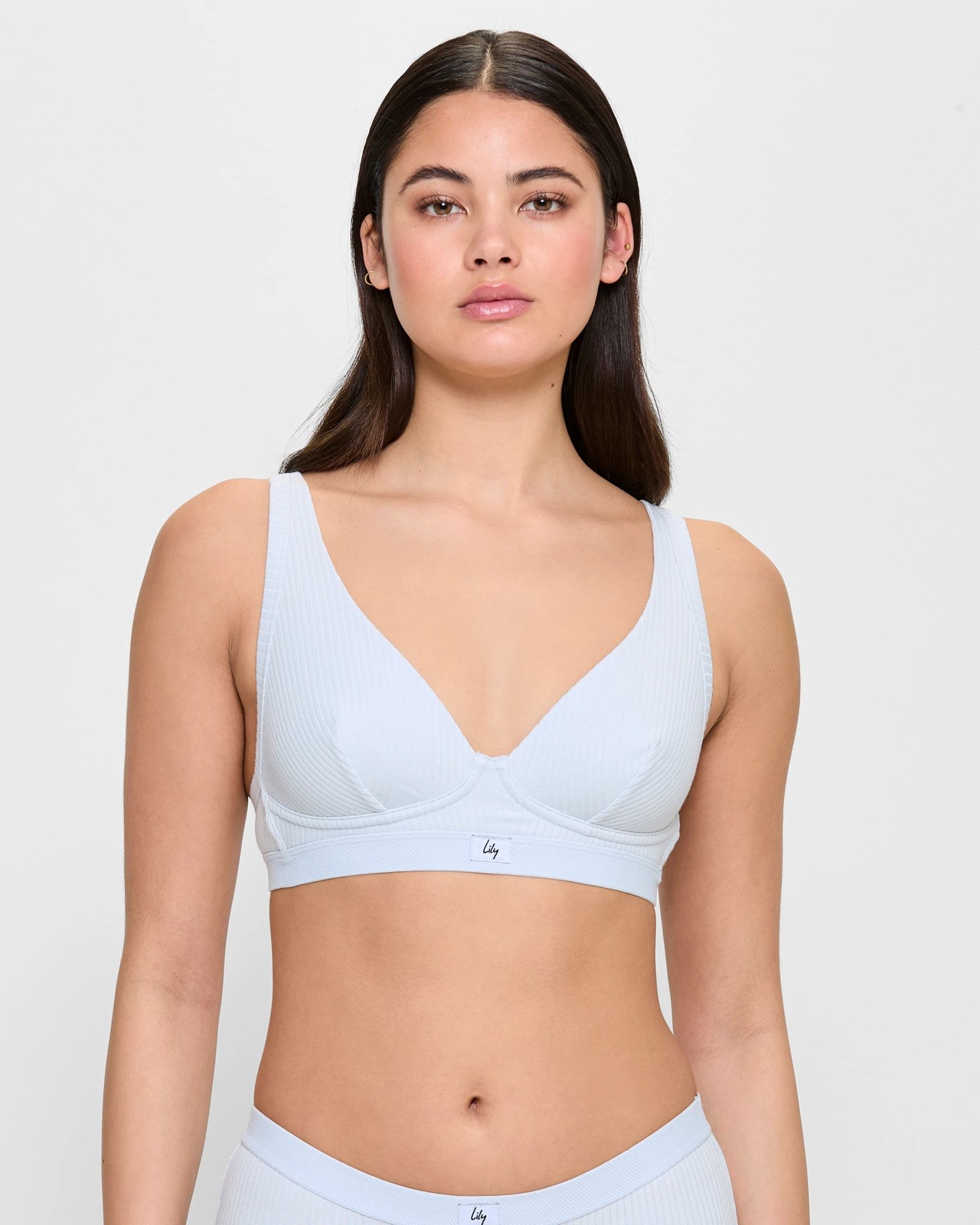 Discover ultimate comfort with the Heritage Rib Wirefree Plunge Bra by Lily Loves. Made from a luxurious modal and cotton blend, this bra offers a stretch elastane for a flexible fit. The ribbed design and deep plunge neckline add a touch chic style, while the soft cups and wire-free construction ensure all-day ease. Featuring thick, adjustable shoulder straps and a supportive underband with a charming Lily applique, it'll become your new go-to. Complete the look with the matching briefs (sold separately). Try it today and experience sublime comfort!