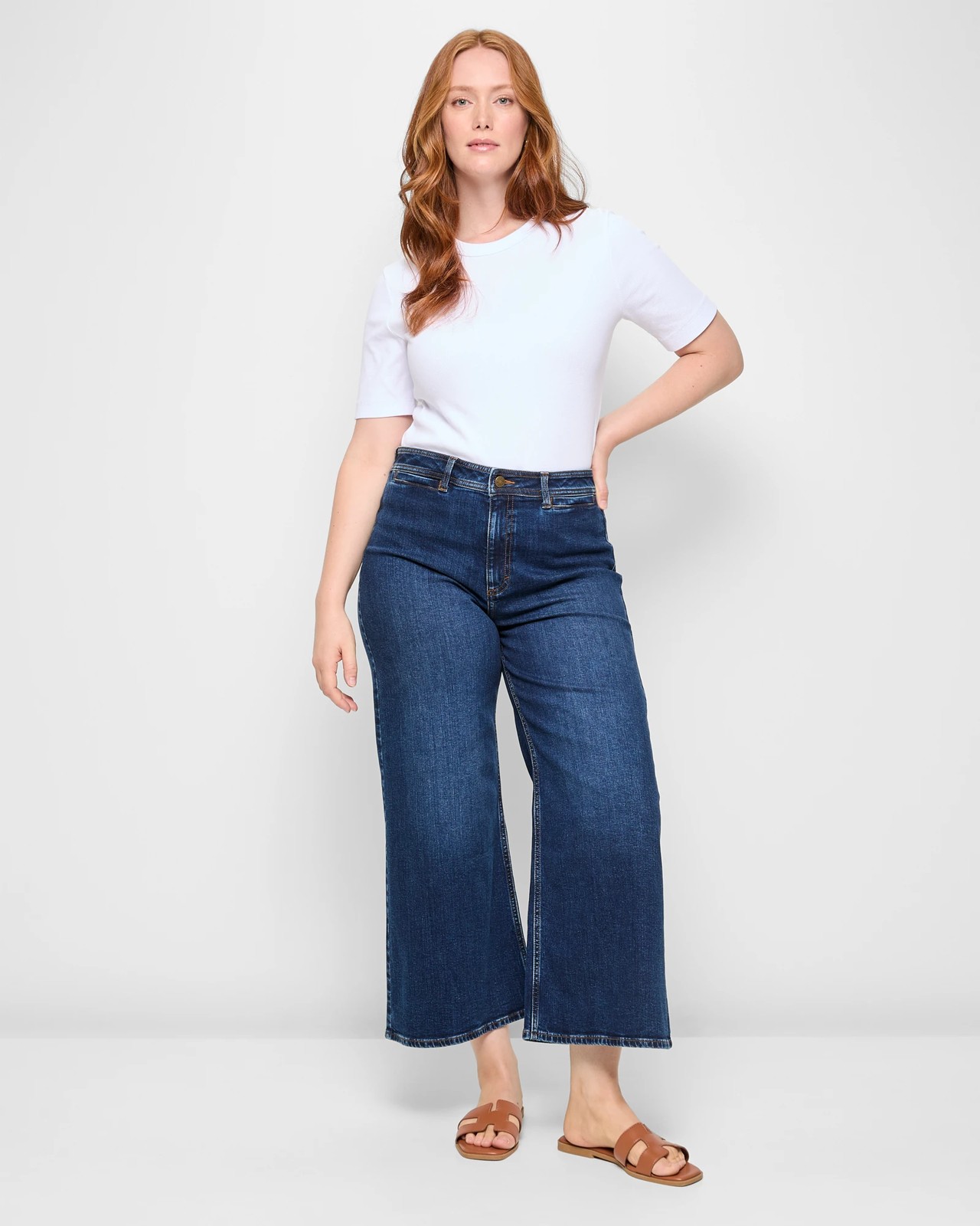 Discover ultimate comfort and style with Kelsey high-rise, cropped wide leg jeans. Made from excellent cotton-rich fabric and enhanced with a touch of elastane, these jeans offer a comfortable fit that moves with you. Featuring a structured waistband with belt loops and a front button and zip fly closure, they present an effortlessly chic look. The wide-cut leg and cropped length add a trendy touch, while open front and back pockets provide functionality. Transform your wardrobe with these versatile jeans that are perfect for any occasion.