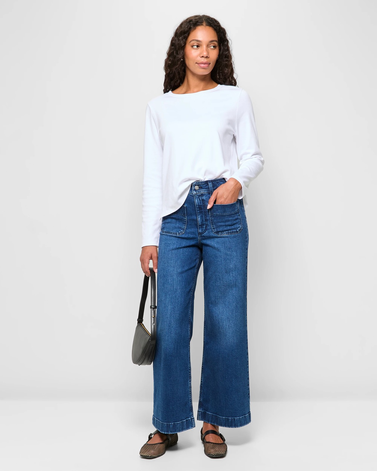 High Rise Full Length Flat Front Wide Leg Denim Jeans - Mila