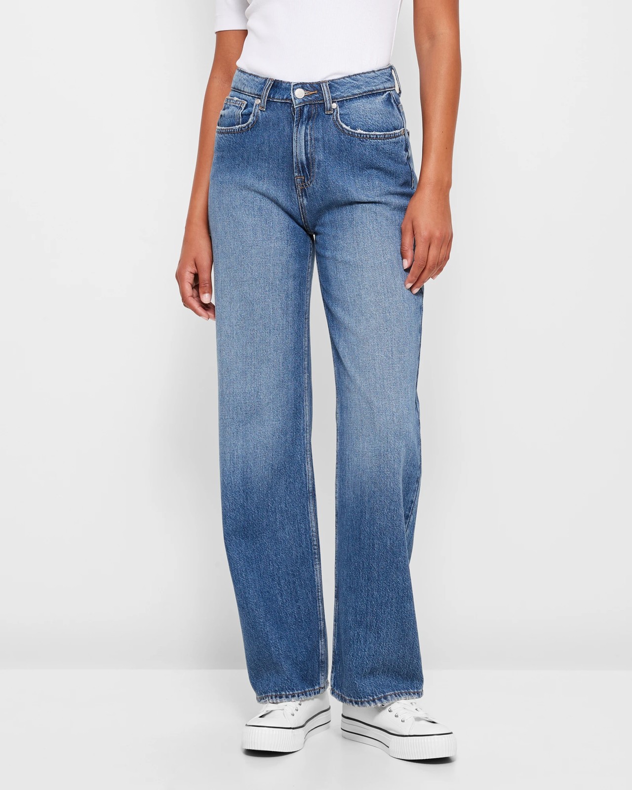 Step up your denim game with our Imogen denim jeans. Crafted from a comfortable cotton and lyocell blend, these jeans offer a lightweight and breathable feel. The relaxed loose fit, high-rise waist, and wide leg design provide a flattering silhouette and all-day comfort. The classic blue wash and stylish straight hemline make these jeans a versatile addition to your wardrobe. Elevate your look with these full-length denim jeans and enjoy effortless style and comfort every day.