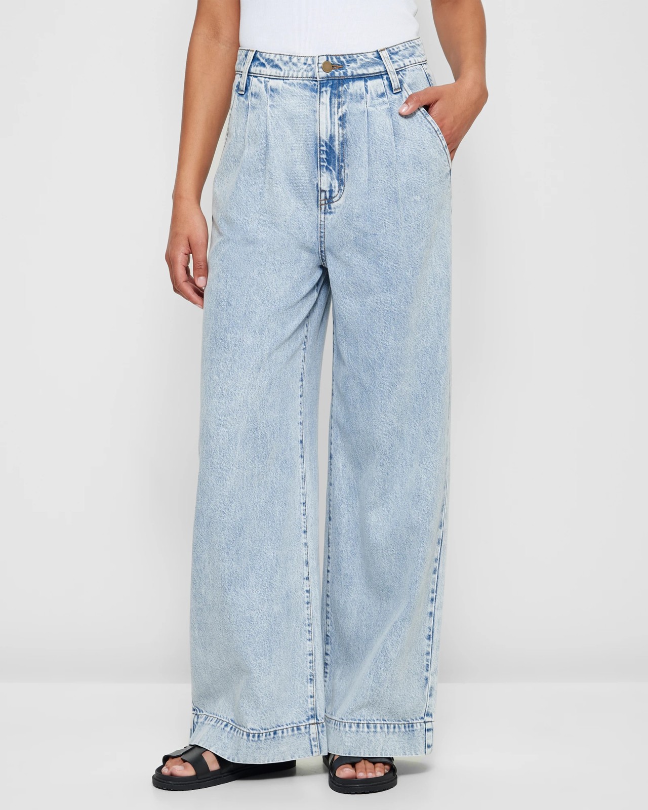 Experience a new level of comfort and style with our High Rise Pleat Front Wide Leg Denim Jeans. Crafted from a soft cotton and lyocell blend with recycled materials. Featuring a high rise waist and a structured waistband with belt loops, they offer a flattering fit. The permanent front pleating from the waistband adds a touch of elegance, while the wide legs provide freedom of movement. Step out in confidence with these full-length jeans, complete with front and back pockets. Upgrade your denim collection today!