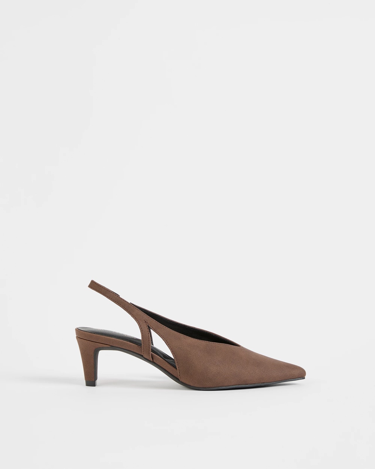 High Vamp Kitten Heel Sling Back - Chocolate Faux Suede