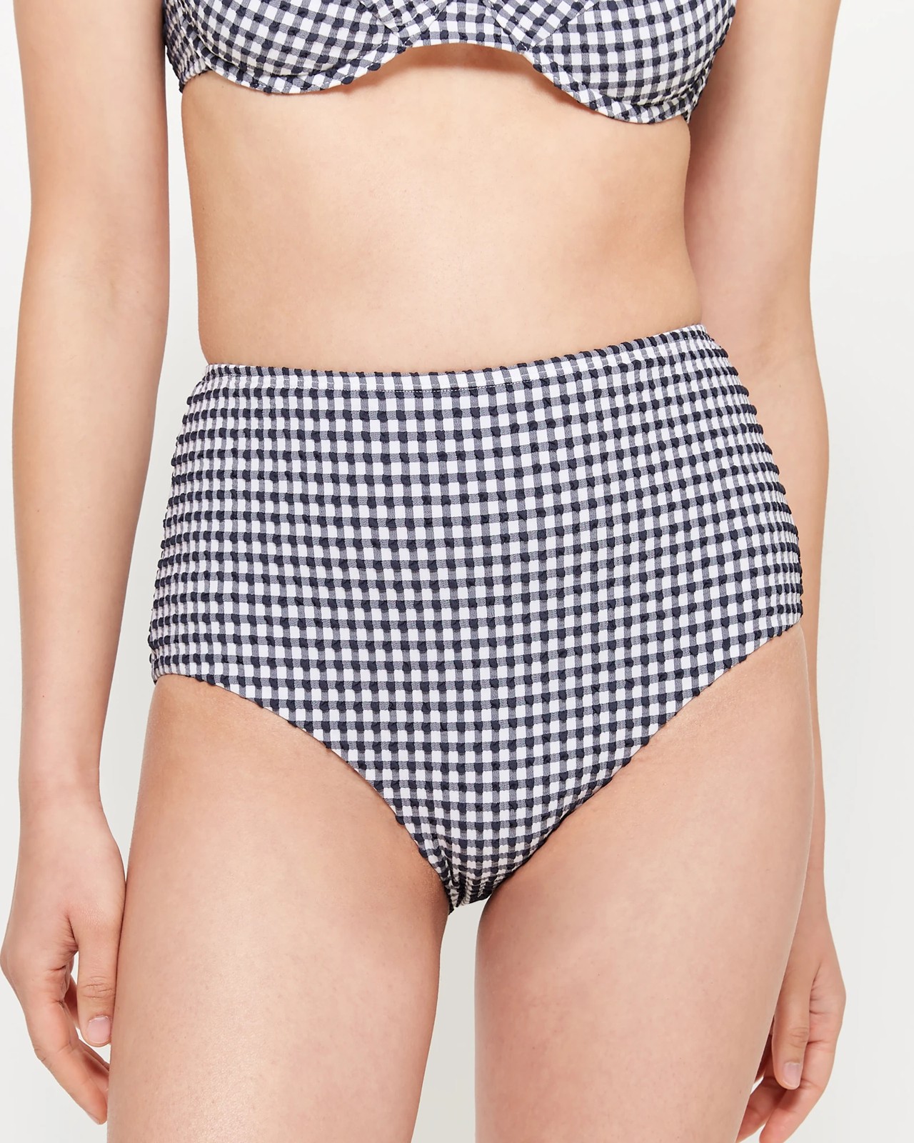 High Waist Seersucker Swim Bikini Bottoms - Shape Your Body