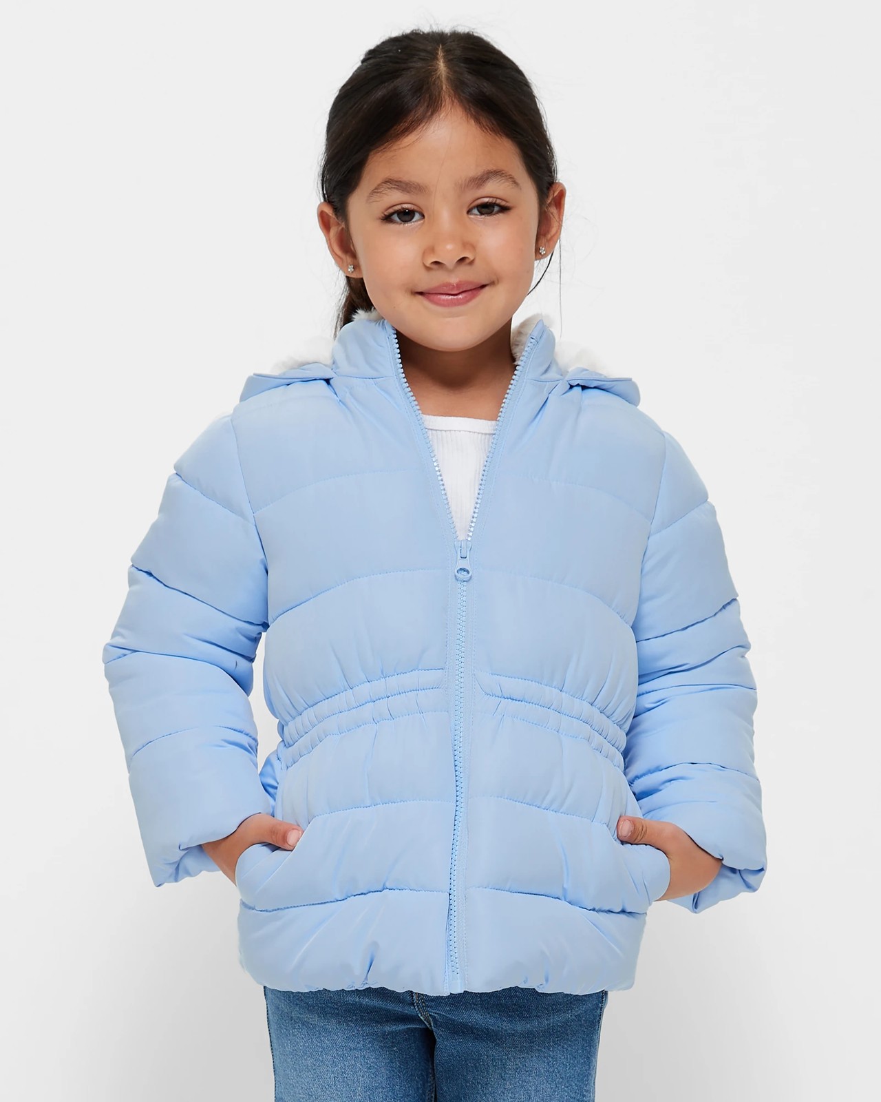 Stay snug and stylish this season with our hooded longline puffer jacket. Crafted using recycled materials, this jacket features a padded outer and a faux fur lined hood, making it both cosy and sustainable. The zip front and elastic waistband offer a comfortable fit, while the fully lined design ensures warmth on chilly days. Embrace the ultimate blend of fashion and functionality with this must-have winter staple.