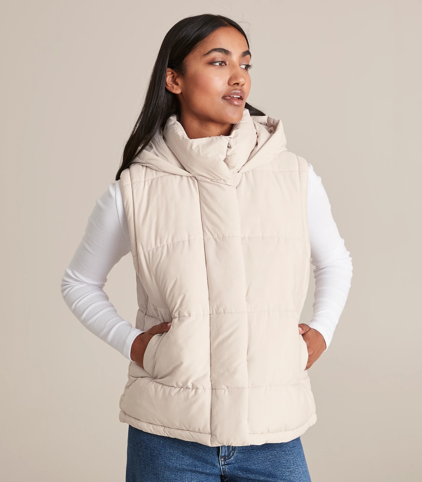 A great coverup to keep you warm through winter, the hooded puffer vest has a classic puffer design, a hooded neckline with a high neckline for greater protection from the elements and is lined for warmth.