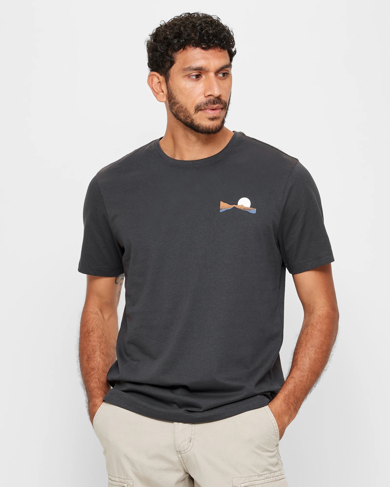 Elevate your casual style with our Horizon Print T-Shirt for men. Crafted from a high-quality cotton fabric, this t-shirt offers a lightweight and breathable fit that keeps you comfortable throughout the day. The regular fit ensures a relaxed yet stylish look. In a trendy washed black colour, it features a ribbed crew neckline and short sleeves for a classic appeal. The standout feature is the bold chest and back print of the horizon, adding a touch of uniqueness to your outfit.