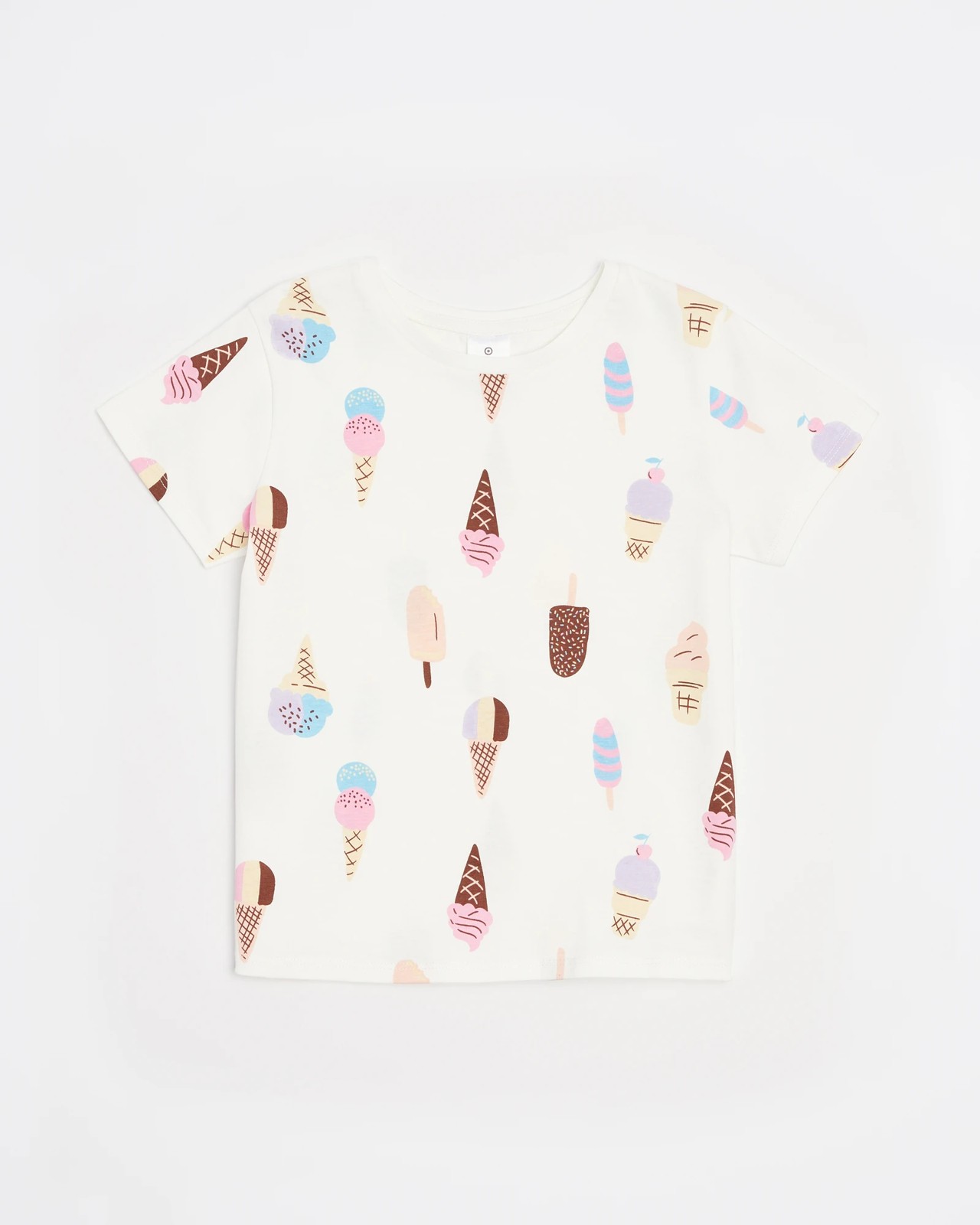 This T-shirt is perfect for girls who love the fun and delicious taste of ice cream! Crafted from a cotton rich fabric, this regular fit T-shirt has a white all over ice cream print for a unique look. It features a classic crew neck, short sleeves and a straight hem, making it perfect for casual days out or days spent lounging at home.