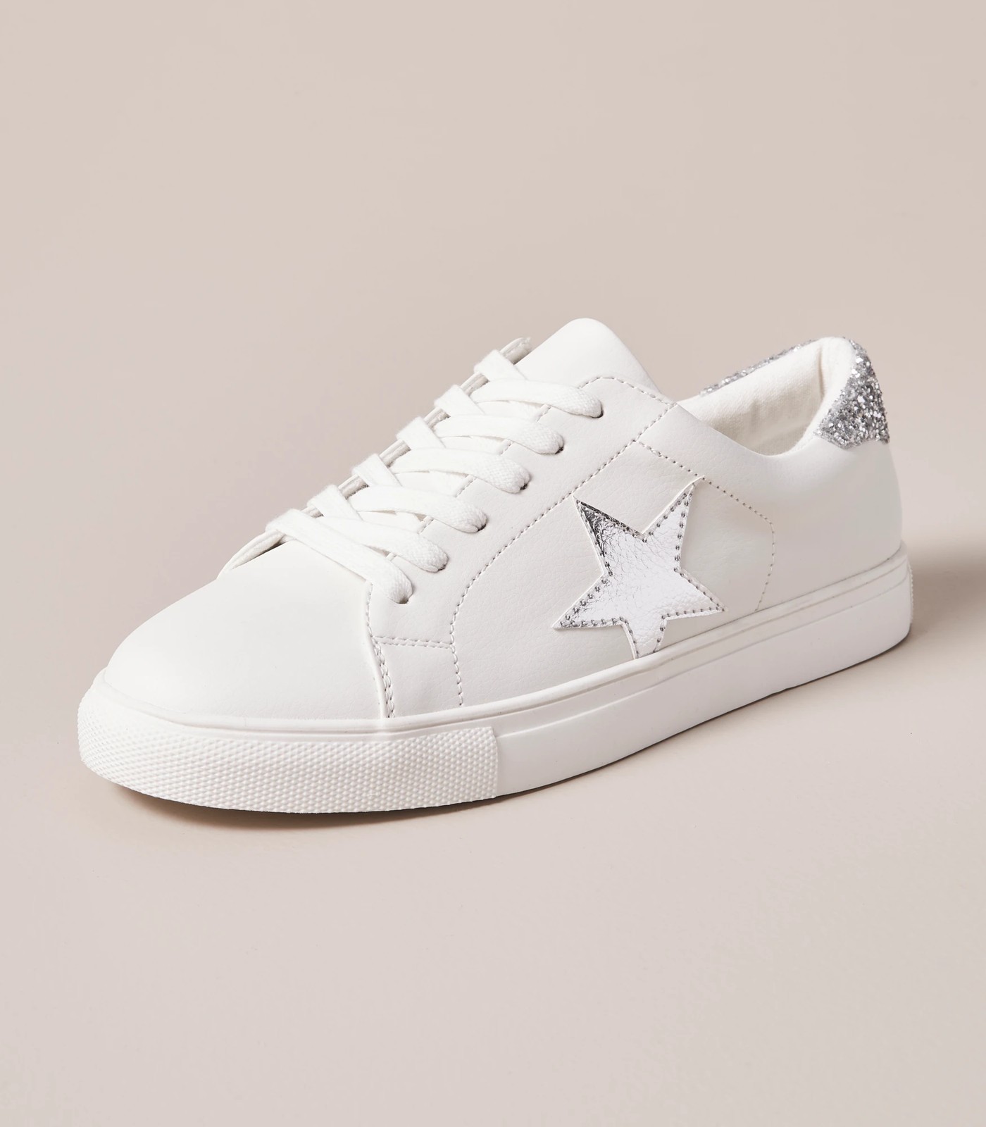 A great everyday shoe, the Illinois star tennis shoes have a lace up front, a bold silver star on the outer side, a glitter back collar, a cushioned inner sole for comfort and a non-slip sole.