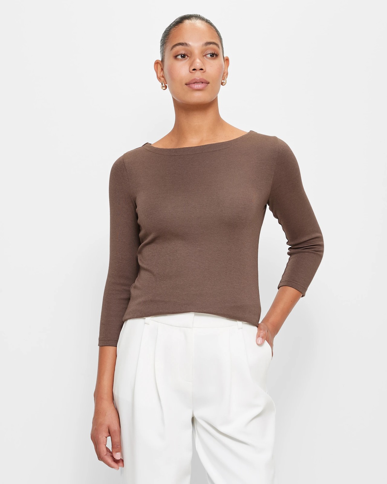 Introducing the Isabel Boat Neck Top by Preview. This stylish top is made from a cotton/modal blend, providing a comfortable and stretchy fit. Featuring a regular fit with a flattering boat neckline and 3/4 sleeves, this top is perfect for any occasion. The straight hemline adds a touch of elegance to your look. Whether you're going for a casual day out or dressing up for a special event, the Isabel Boat Neck Top is the perfect addition to your wardrobe.