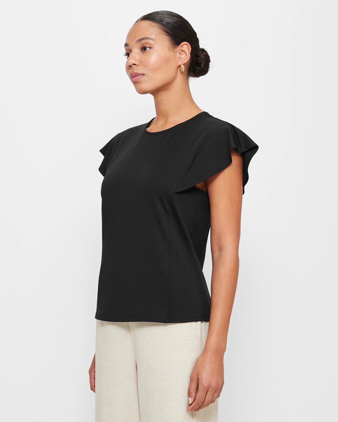 Indulge in effortless elegance with the Preview Jersey Flutter Sleeve Top. Crafted from a luxurious viscose/polyester blend, the top offers a soft, stretchy feel for supreme comfort. The regular fit, rounded neckline, and short flutter sleeves combine to create a chic yet relaxed look. Side panels and a curved hemline add stylish touches to the versatile design. Elevate your everyday wardrobe with the perfect blend of comfort and style.