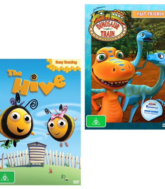 This bundle includes 2 products: 1 x Dino Train: Fast Friends DVD and 1 x The Hive: Busy Buzzing DVD. Please see the features tab for individual movie synopses.
