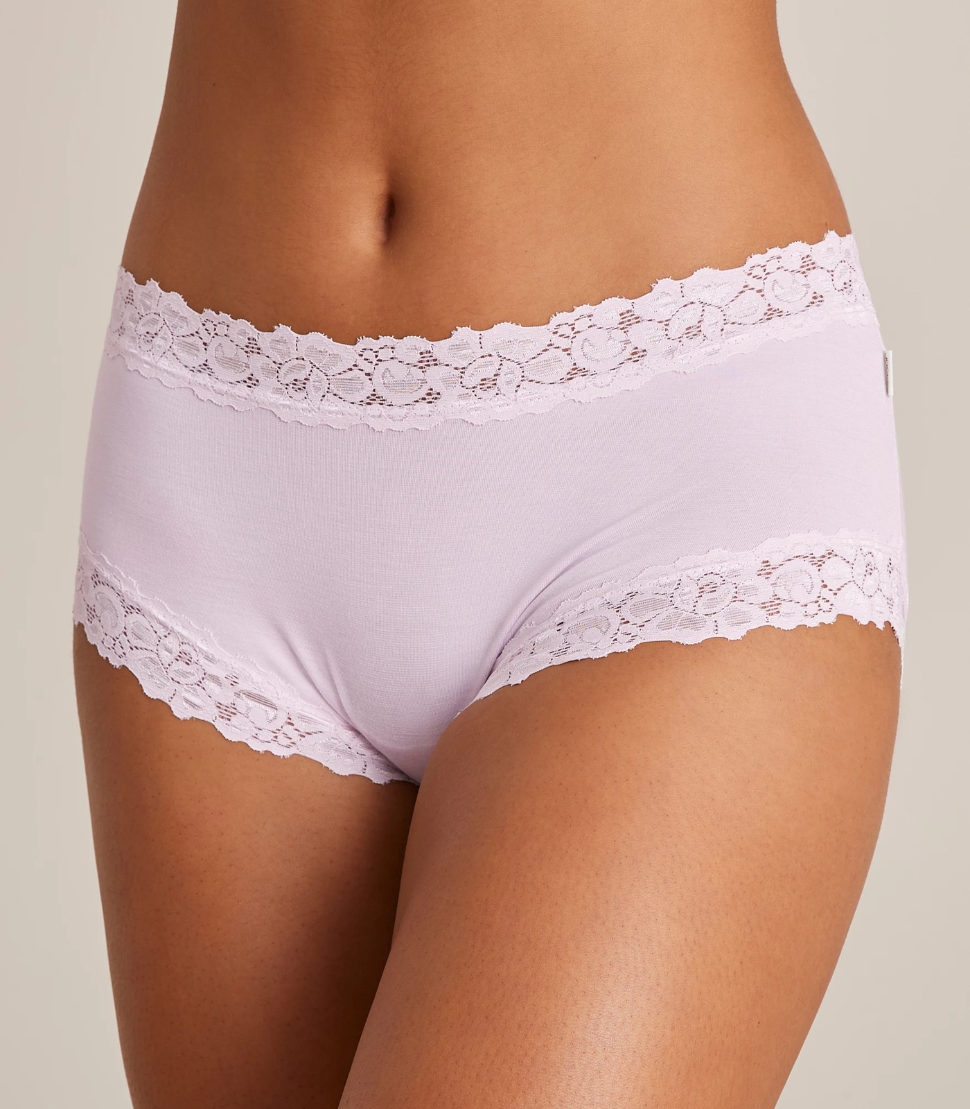 Step up your underwear game with these French-inspired Jockey® Parisienne® Bamboo Boyleg Briefs. Featuring stunning stretch lace, a lightweight breathable bamboo rich fabrication and great stretch for comfort, these briefs have a mermaid tale purple color with an elastic waistband and low rise waist. The low cut legline provides full back coverage so you can feel confident all day long. Whether you’re headed to work or a night out, these briefs will keep you feeling comfortable and stylish. Get ready to be the envy of your friends!
