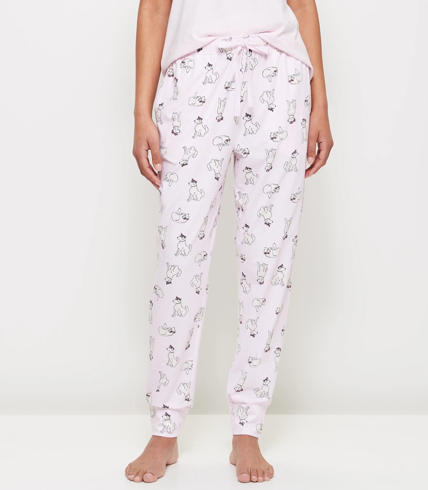 Discover comfort and style with our Jogger Pyjama Pants. These pants are made from a breathable cotton rich fabrication that stretches for extra comfort. The regular fit features a mid rise waist with an elastic waistband and drawstring for an adjustable fit. Side pockets complete the classic jogger cut, while the pink dog print adds an eye-catching detail to this must-have essential.