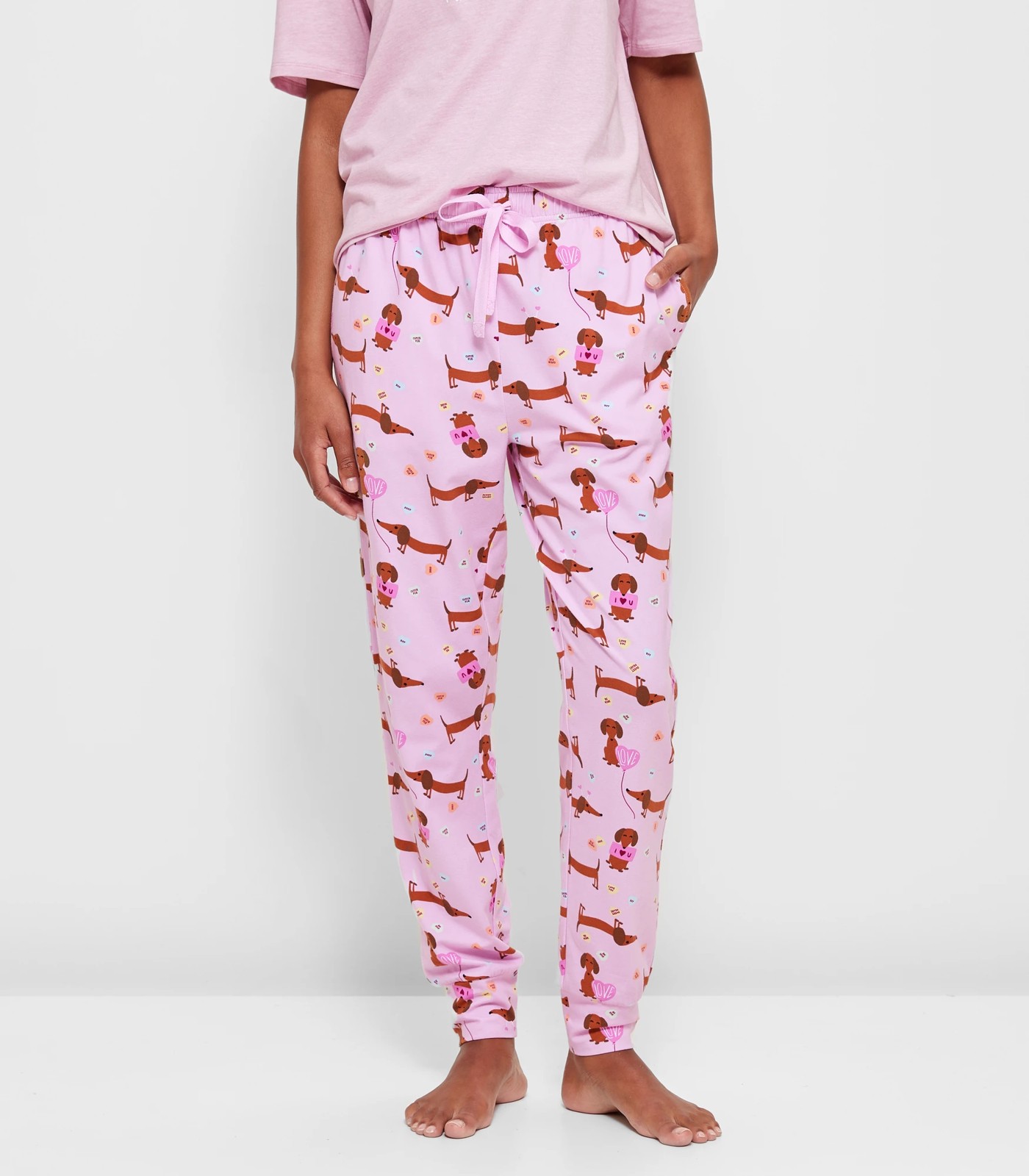 Discover comfort and style with our Jogger Pyjama Pants. These pants are made from a breathable cotton rich fabrication that stretches for extra comfort. The regular fit features a mid rise waist with an elastic waistband and drawstring for an adjustable fit. Side pockets complete the classic jogger cut, while the pink dog print adds an eye-catching detail to this must-have essential.