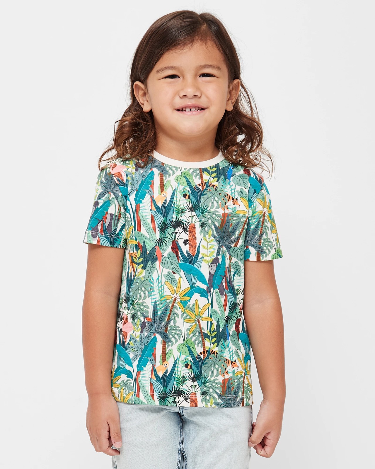 Discover cool style with this Jungle Print T-shirt. Crafted from soft cotton, it features a classic regular fit and all over jungle theme print. Complete with a ribbed crew neck, short sleeves and straight hem, this is the perfect addition to any wardrobe.