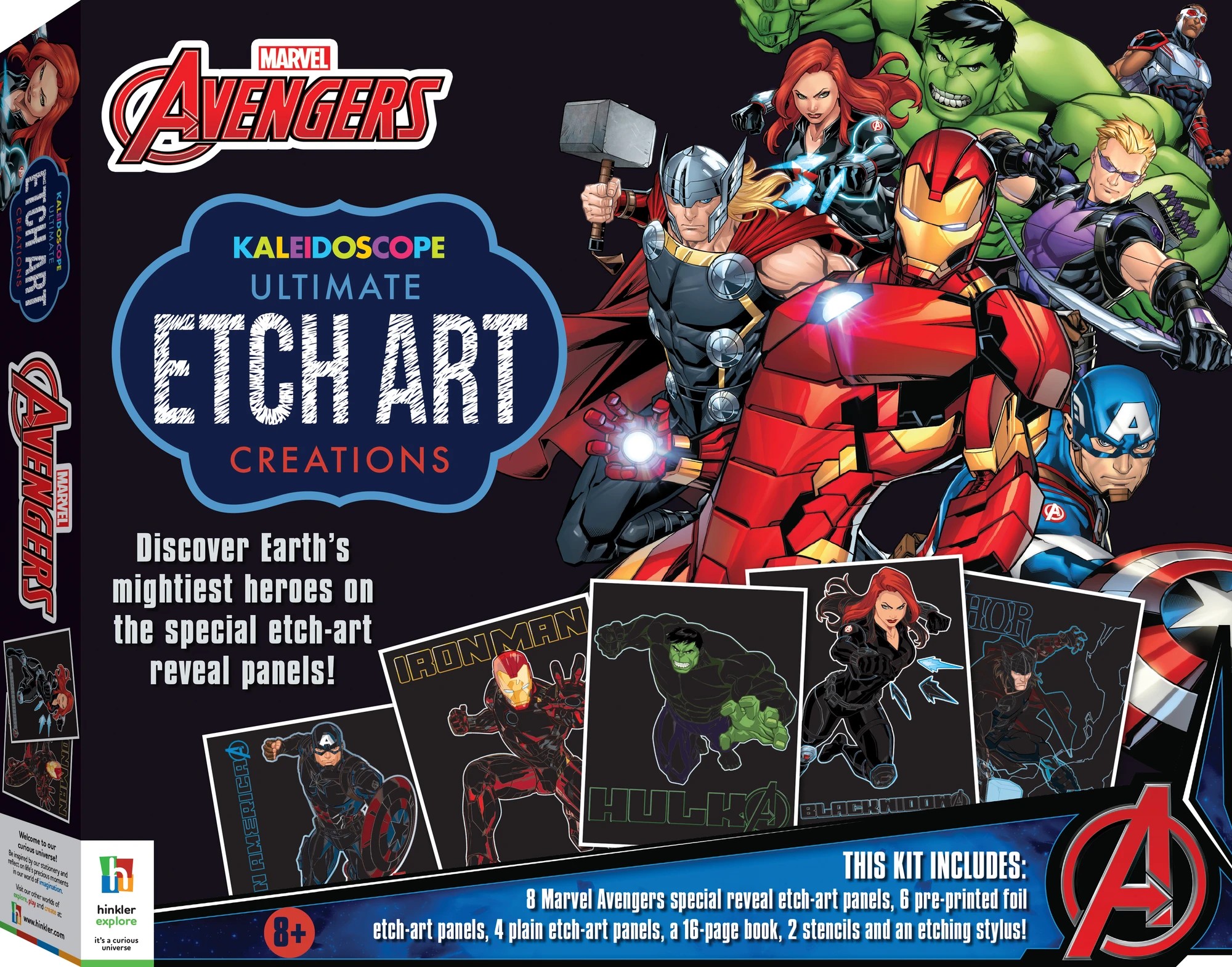 Discover your inner superhero with this action-packed Kaleidoscope Ultimate Etch Art Kit: Marvel Avengers. Use the etching tool to scratch away the panels, reveal your favourite heroes and bring them to life!