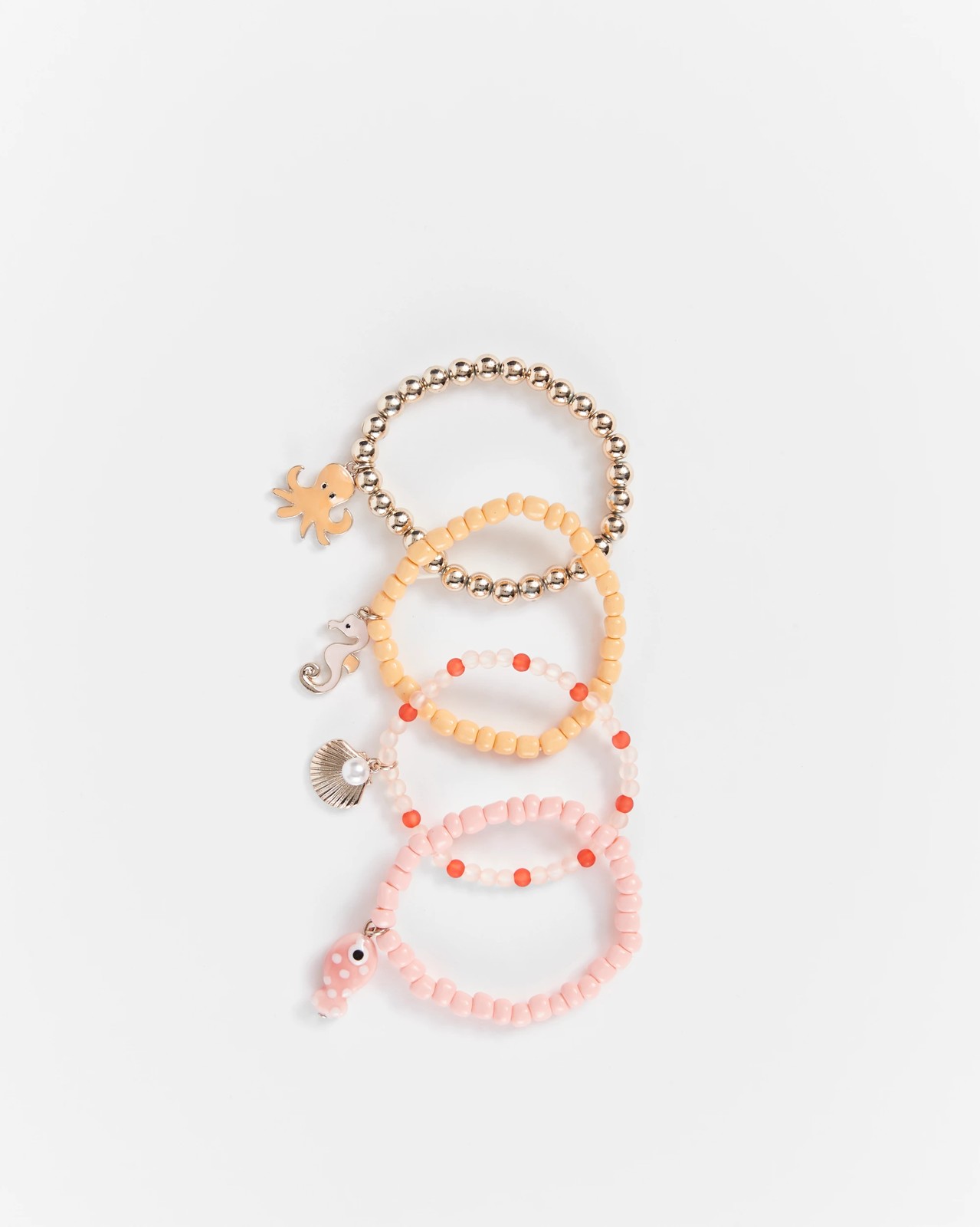 Bring a splash of fun to any outfit with this delightful kids' four-piece sea-themed stretch bracelet set. Each bracelet features a charming underwater creature, from a playful seahorse to a cheeky octopus, making every day a little more special. The stretchy design means they're easy for little hands to slip on, making getting dressed up a breeze. Perfect for sparking the imagination, these vibrant bracelets are ideal for sharing with friends or mixing and matching. Add a touch of ocean magic to your child's accessories and let their personality shine. Treat your little one to this cheerful set and watch their creativity flourish.