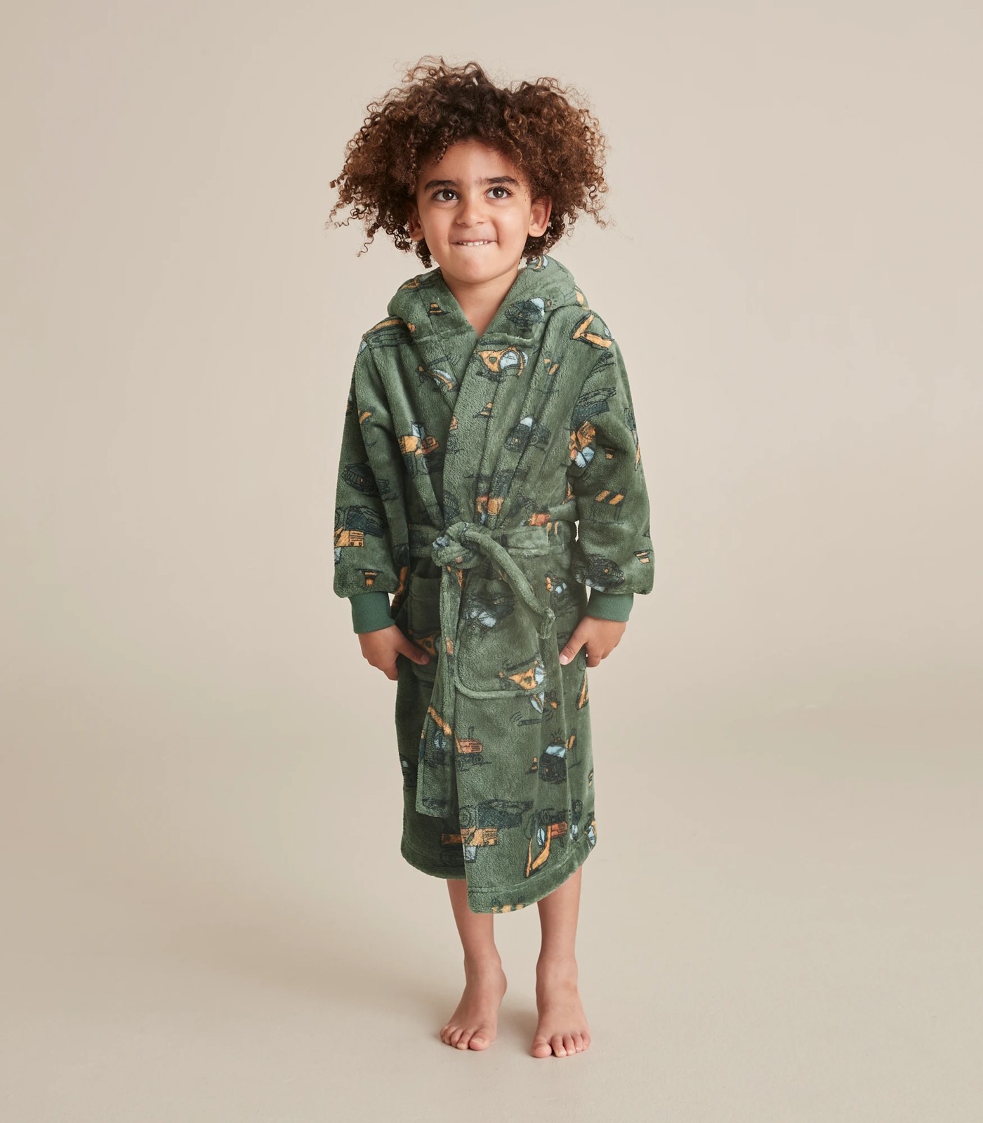 Great to snuggle up in on chilly nights comes the Kids Construction Fleece Dressing Gown, featuring an all over print, two front pockets and a sherpa fleece lined hood, perfect for a cosy night in.