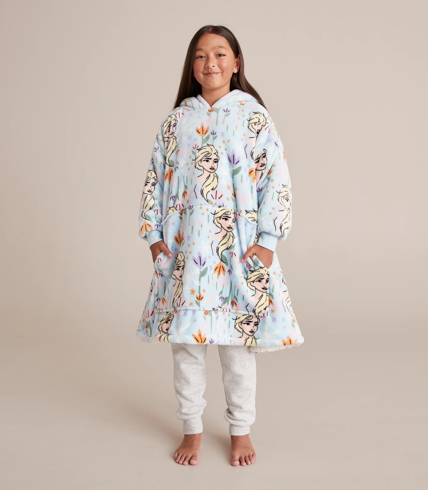 Great to snuggle up on chilly nights in comes the Kids Disney Frozen Fleece Oversized Hoodie, featuring an all over print, an extra large front kanga pocket to fit all the essentials for a cosy night in and is crafted using recycled materials.