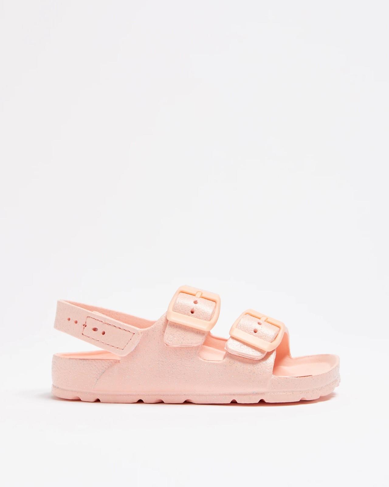 The Kids Junior Eva Sandals are great for everyday wear in the warmer months. They feature thick double straps across the bridge of the foot with buckle closure, an open back for easy slip on and a moulded footbed for comfort.