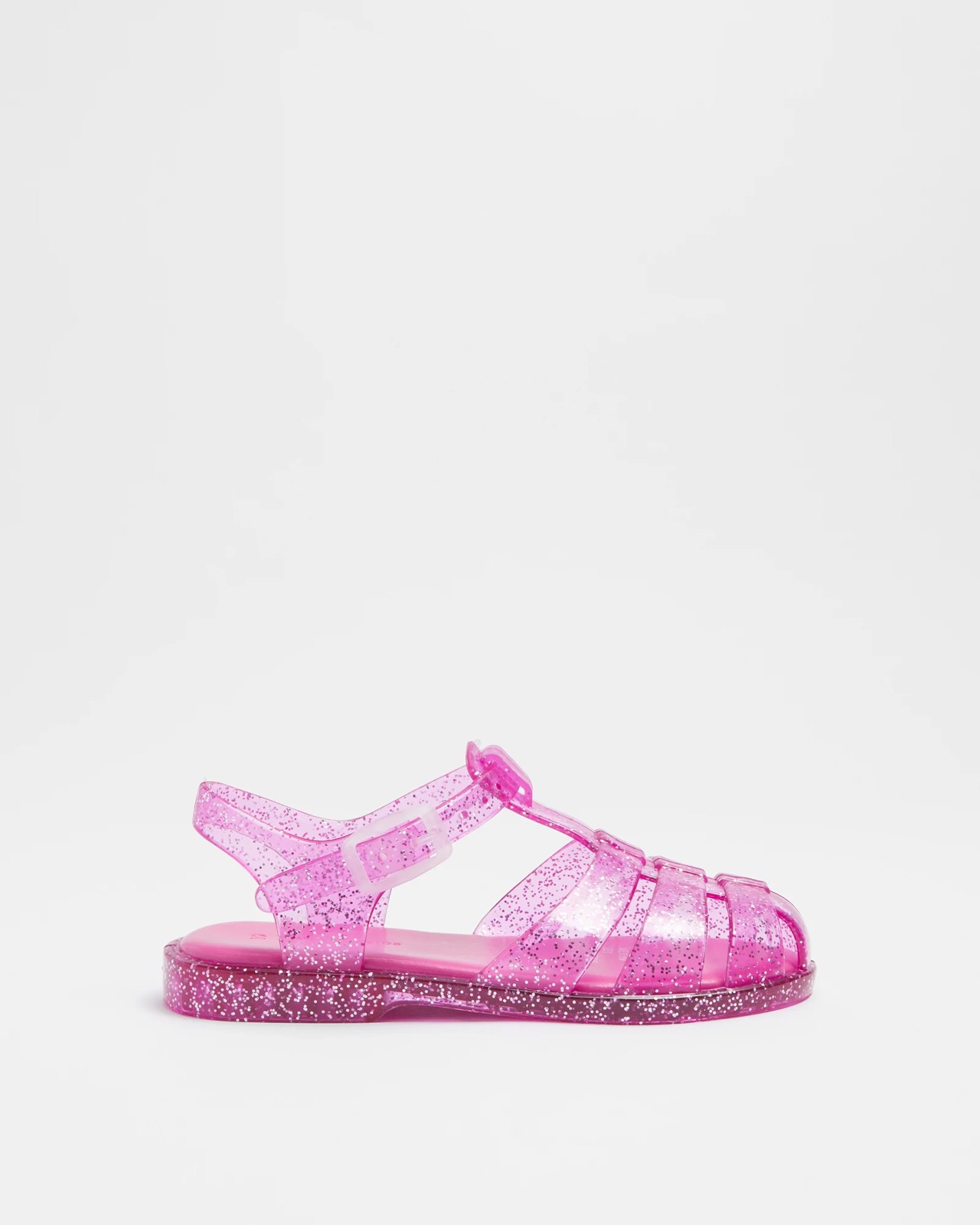 Make a statement with these Kids Junior Jelly Sandals! Featuring a clear synthetic glitter upper and sole, they have a closed round toe, adjustable buckle ankle strap, open back with heel strap, padded innersole and flexible non-slip sole. Perfect for any occasion, these sandals will be sure to make an impression.