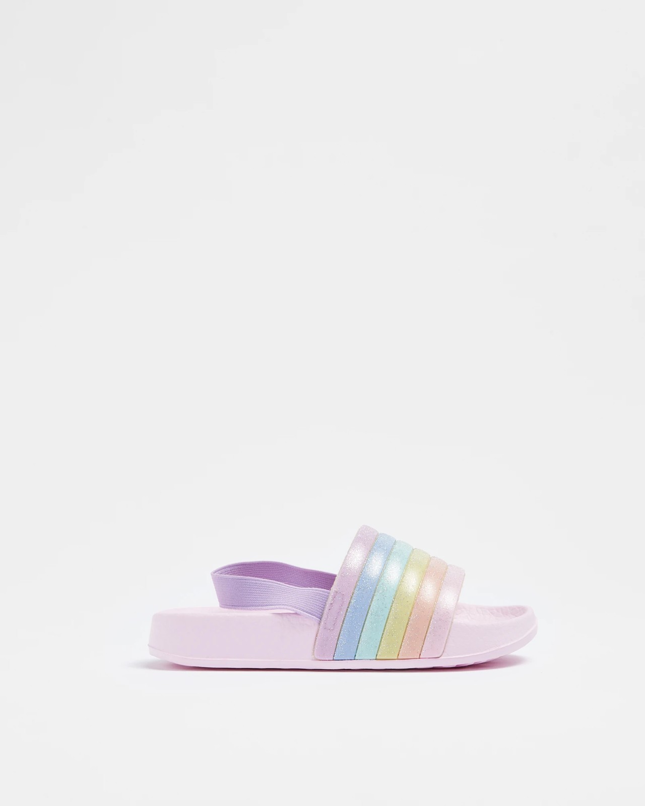 Glittery rainbow thick strap across top of foot