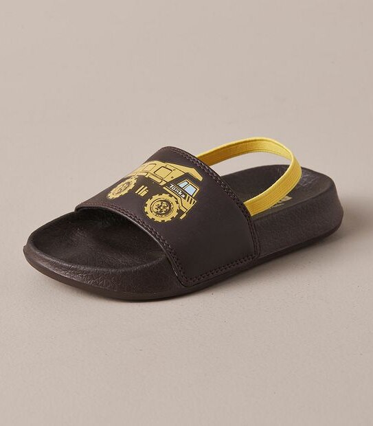 Your little Tonka fan will love these comfy Backstrap Slides feature a print design on main band across vamp of foot, with a soft footbed and a convenient elastic back strap to help keep the slides from slipping. Perfect warm weather staple with easy slip on design.