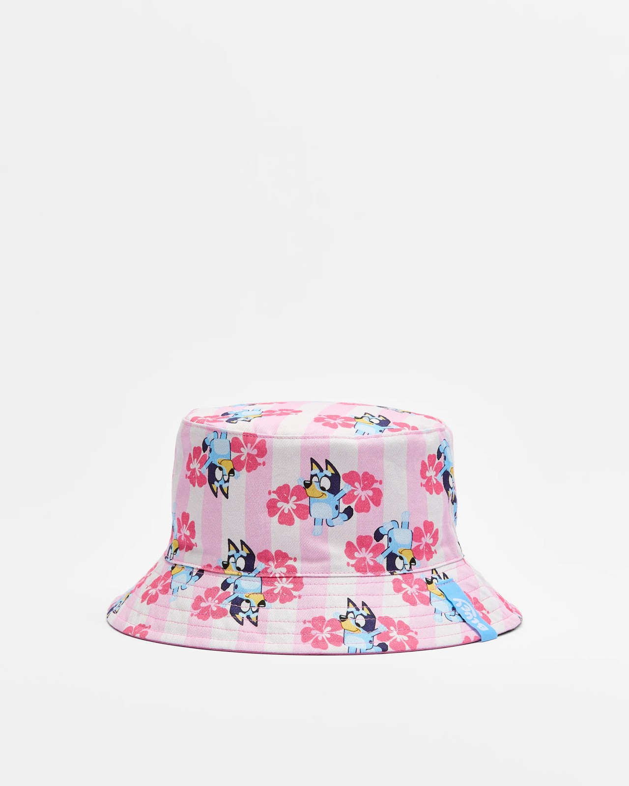 Brighten up your child's wardrobe with this charming Bluey reversible bucket hat. Made from soft cotton, this lightweight and breathable hat offers a comfortable fit, making it ideal for all their outdoor adventures. The classic bucket design features a wide brim that shades little faces from the sun, and the reversible style lets your youngster switch between a lively floral and stripe Bluey print and a solid pink side. The playful Bluey applique on the brim adds a delightful finishing touch. Whether exploring the park or enjoying a family picnic, this hat promises to be their go-to choice for stylish sun protection.