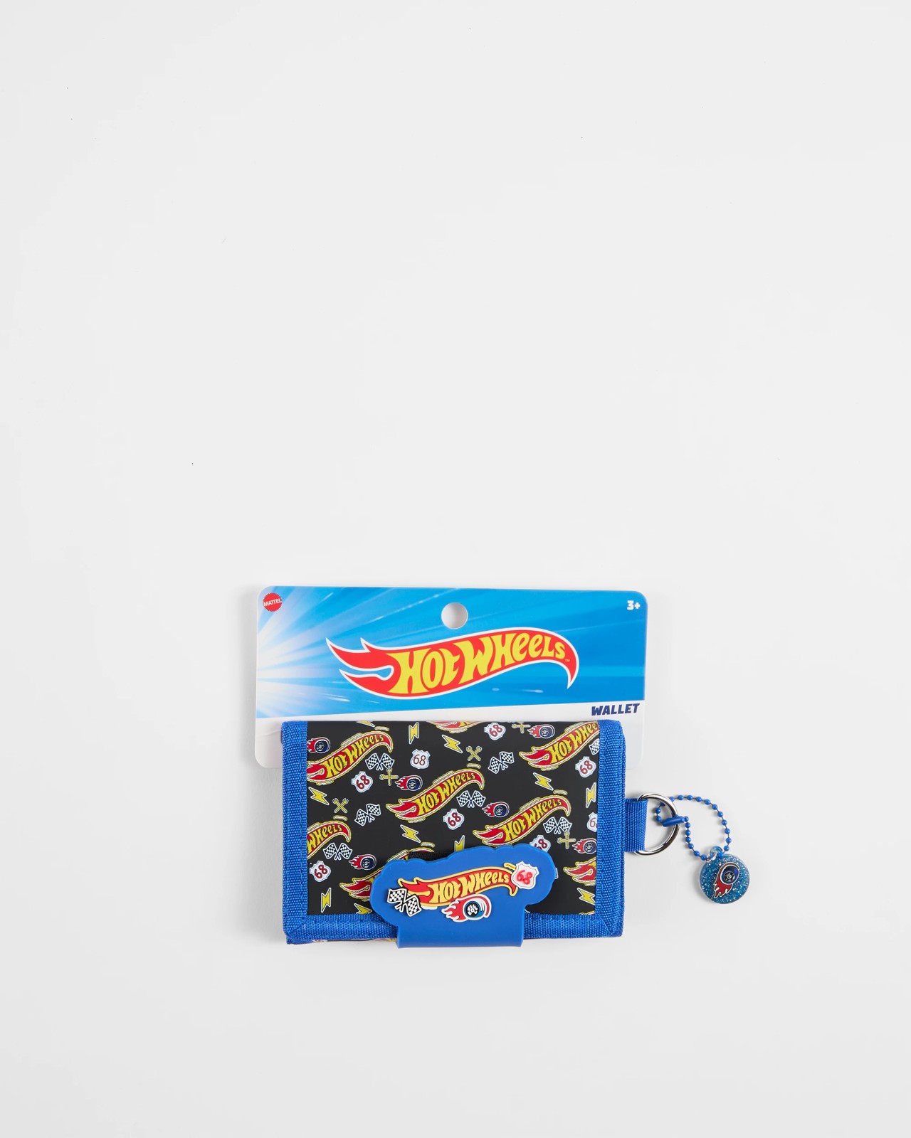 Ignite your child's sense of adventure with our Kids Licenced Hot Wheels Wallet. This energetic black wallet features vibrant car prints on the exterior and comes complete with a chunky Hot Wheels-branded strap for easy carrying. Opening the secure fastener reveals practical compartments, including a zip pocket for coins and a clever see-through slot for a name card. There's even a steering wheel keyring so your little one can carry keys just like a grown-up. Designed to keep all their essentials safe and inspire imaginative play, this wallet is perfect for everyday outings. Let your child feel the thrill of Hot Wheels every time they open their wallet – order today and make every little errand a race.