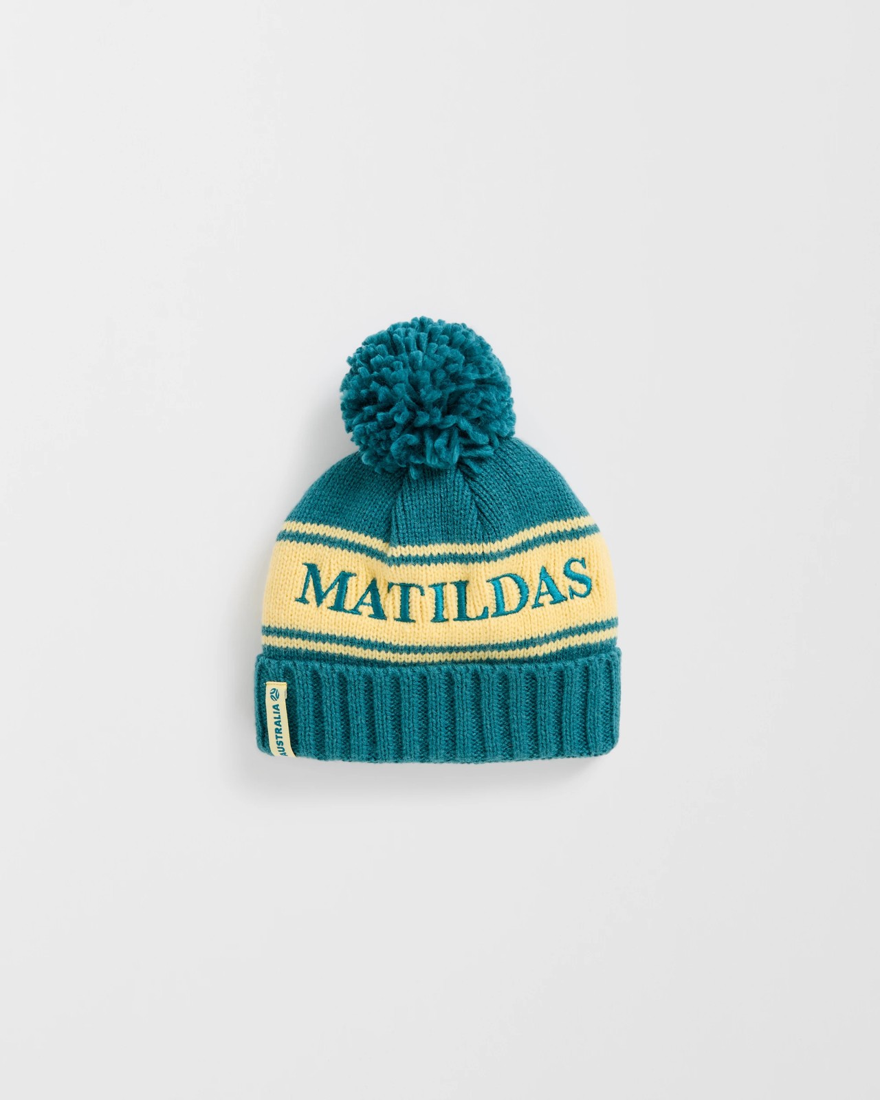 Give your young sports enthusiast the perfect accessory to show off their Matildas pride with the Kids Matildas Licenced Pom Pom Beanie. Designed to offer both warmth and playful charm, this beanie features a chunky knit and a delightful pom pom that make chilly mornings more fun. The ribbed folded brim ensures a snug and comfy fit, so your child can focus on cheering or playing outdoors. Its bold jacquard print stands out, letting everyone see where your child’s loyalties lie. Treat them to a cosy beanie that combines comfort with a dash of team spirit. Ready to spark excitement? Grab this delightful beanie and let the cheering begin!