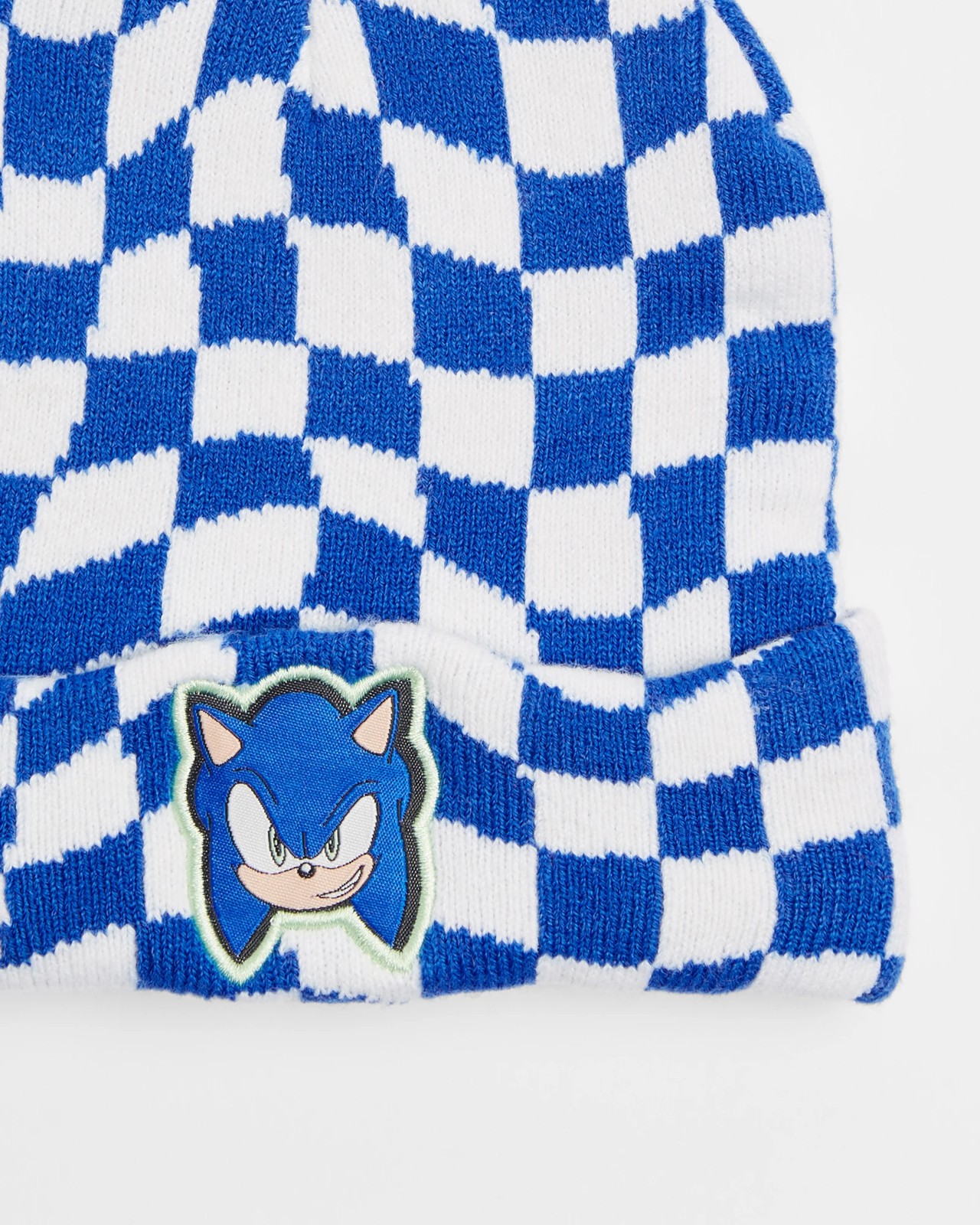 Stay warm and stylish with our Kids Licenced Sonic The Hedgehog Beanie. Perfect for all Sonic fans, the beanie features a unique all-over check design in blue and white, complemented by a fold-over ribbed hem. The acrylic/nylon blend offers a comfortable stretch fit for everyday wear. The iconic Sonic head badge on the front adds a fun touch to the design. Get your little one geared up with the coolness of Sonic. Grab yours now and let them dash through the day in style!
